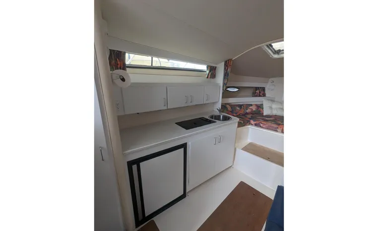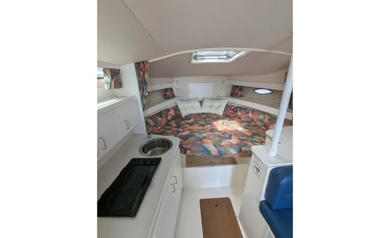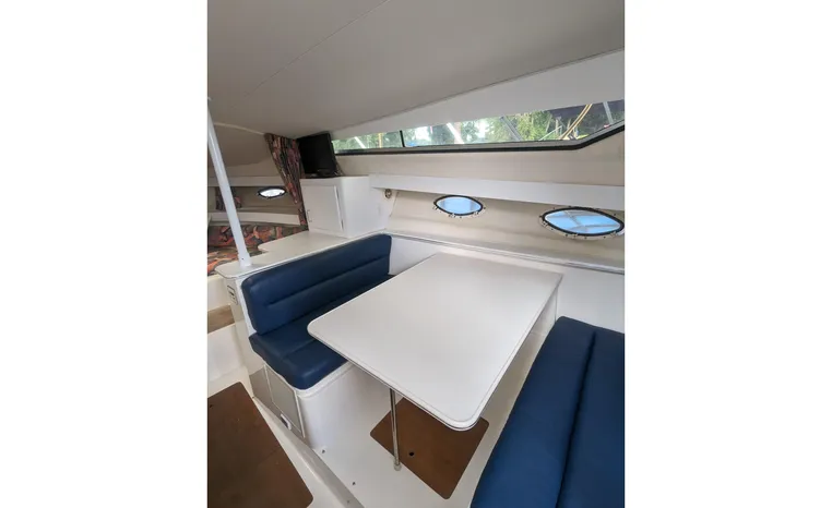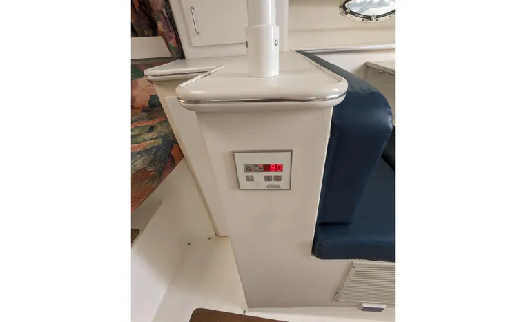 Below deck, the cabin is clean, dry, and inviting with comfortable accommodations for overnight stays. Equipped with generator and air conditioning, this Coastal 330 is set up for extended trips and comfortable dockside living.