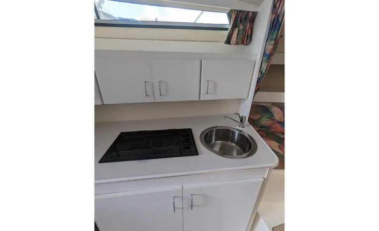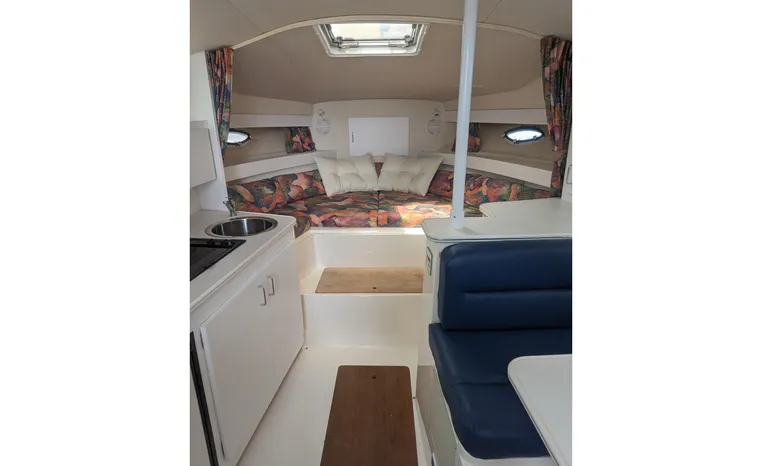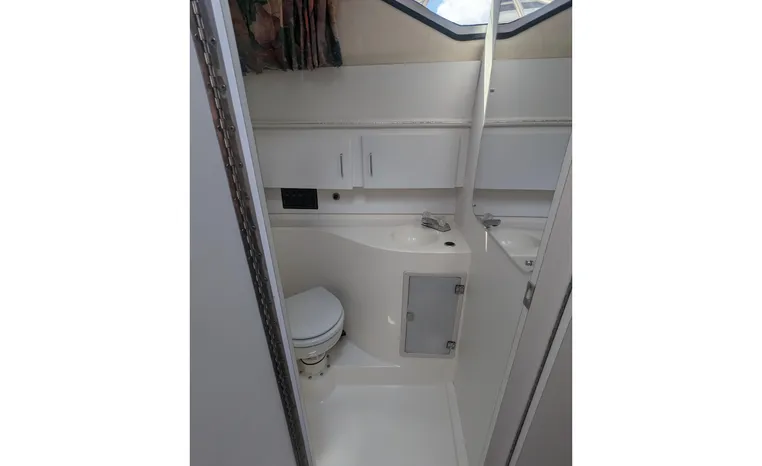 Below deck, the cabin is clean, dry, and inviting with comfortable accommodations for overnight stays. Equipped with generator and air conditioning, this Coastal 330 is set up for extended trips and comfortable dockside living.