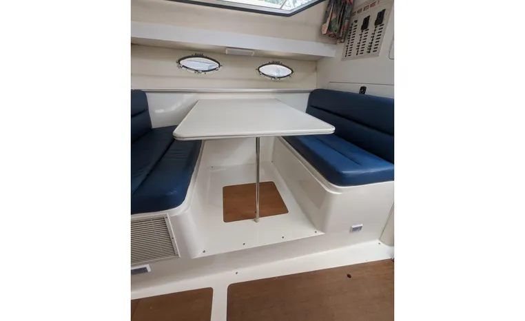 Below deck, the cabin is clean, dry, and inviting with comfortable accommodations for overnight stays. Equipped with generator and air conditioning, this Coastal 330 is set up for extended trips and comfortable dockside living.