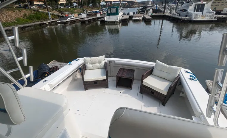 Powered by twin 7.4L MerCruiser inboards, she delivers dependable performance and confident handling whether you’re running offshore, cruising the river, or heading out for a weekend aboard. The hardtop design provides excellent protection from the elements while maintaining great visibility and airflow.