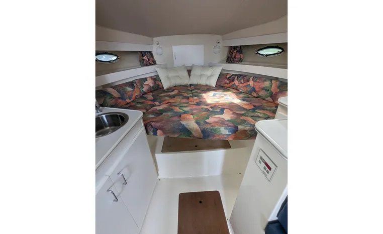 Below deck, the cabin is clean, dry, and inviting with comfortable accommodations for overnight stays. Equipped with generator and air conditioning, this Coastal 330 is set up for extended trips and comfortable dockside living.