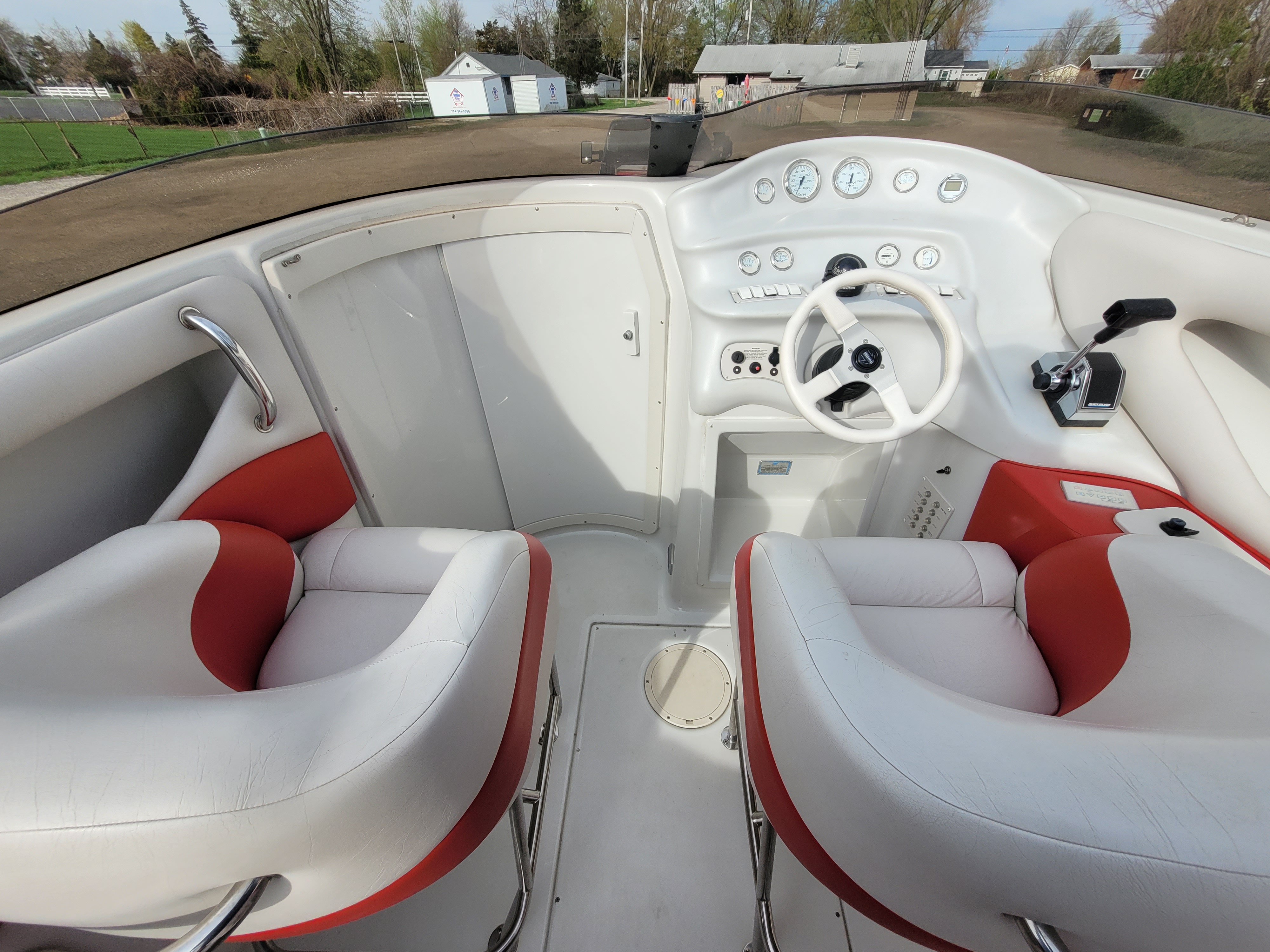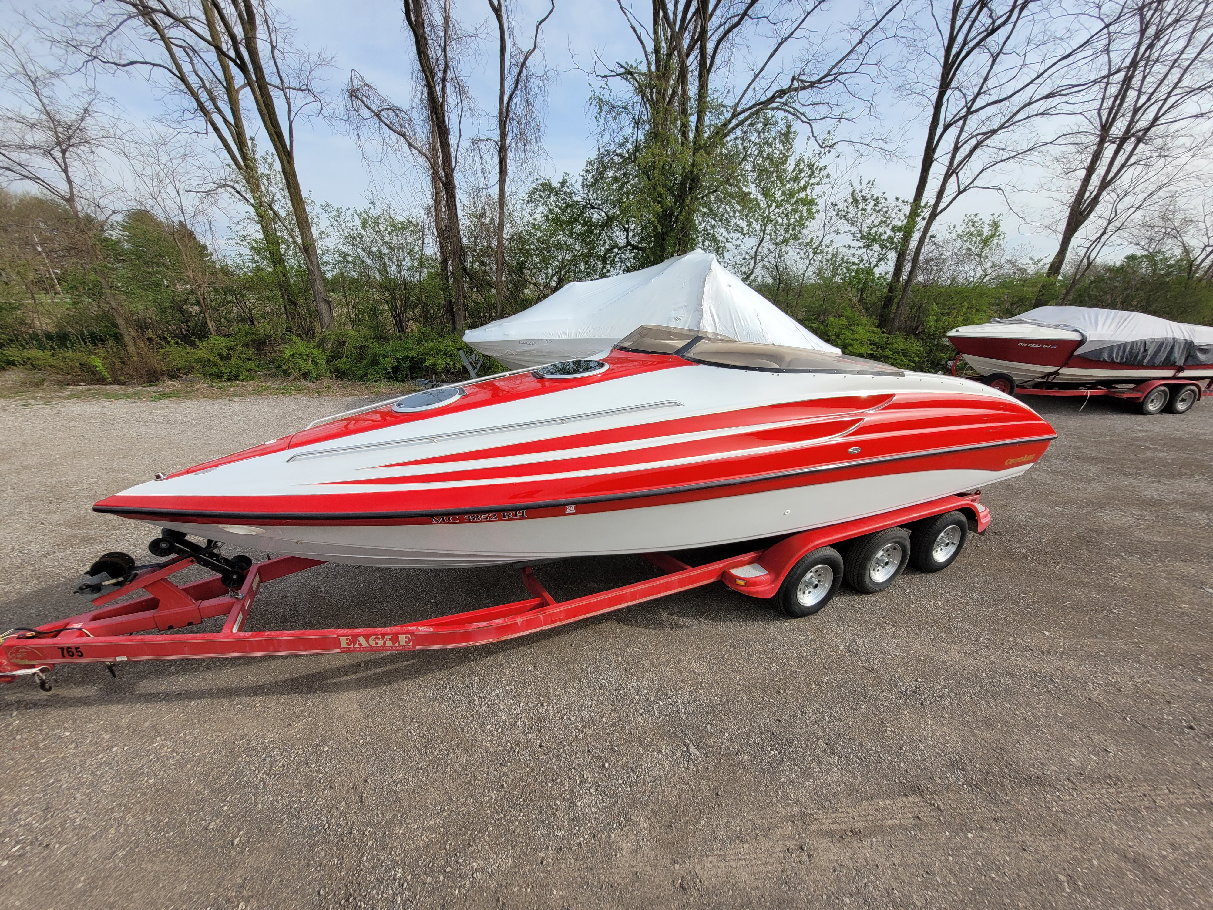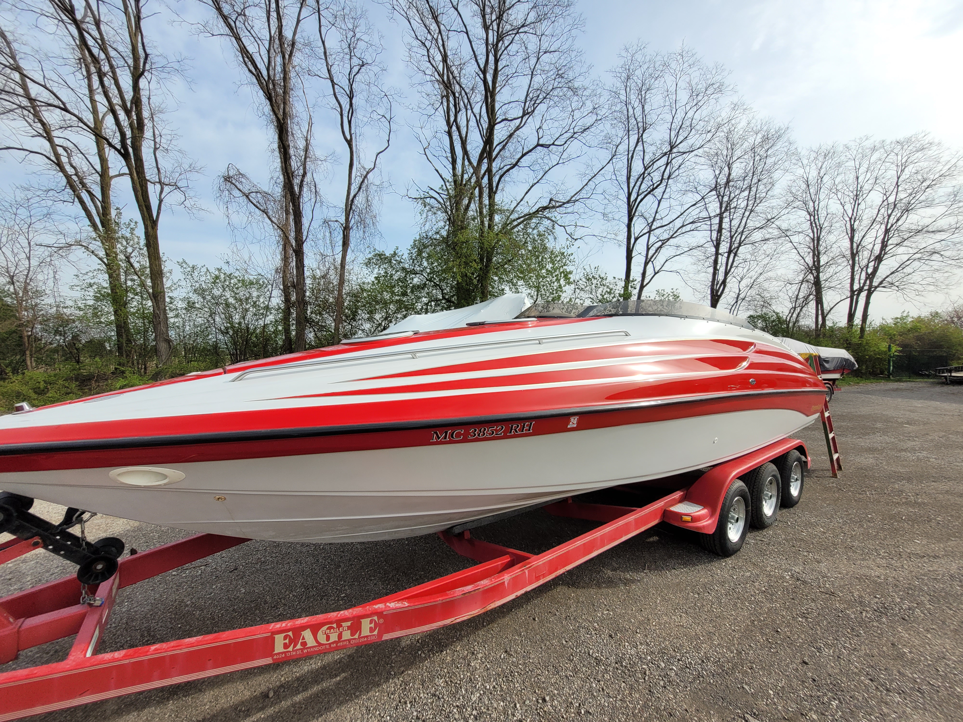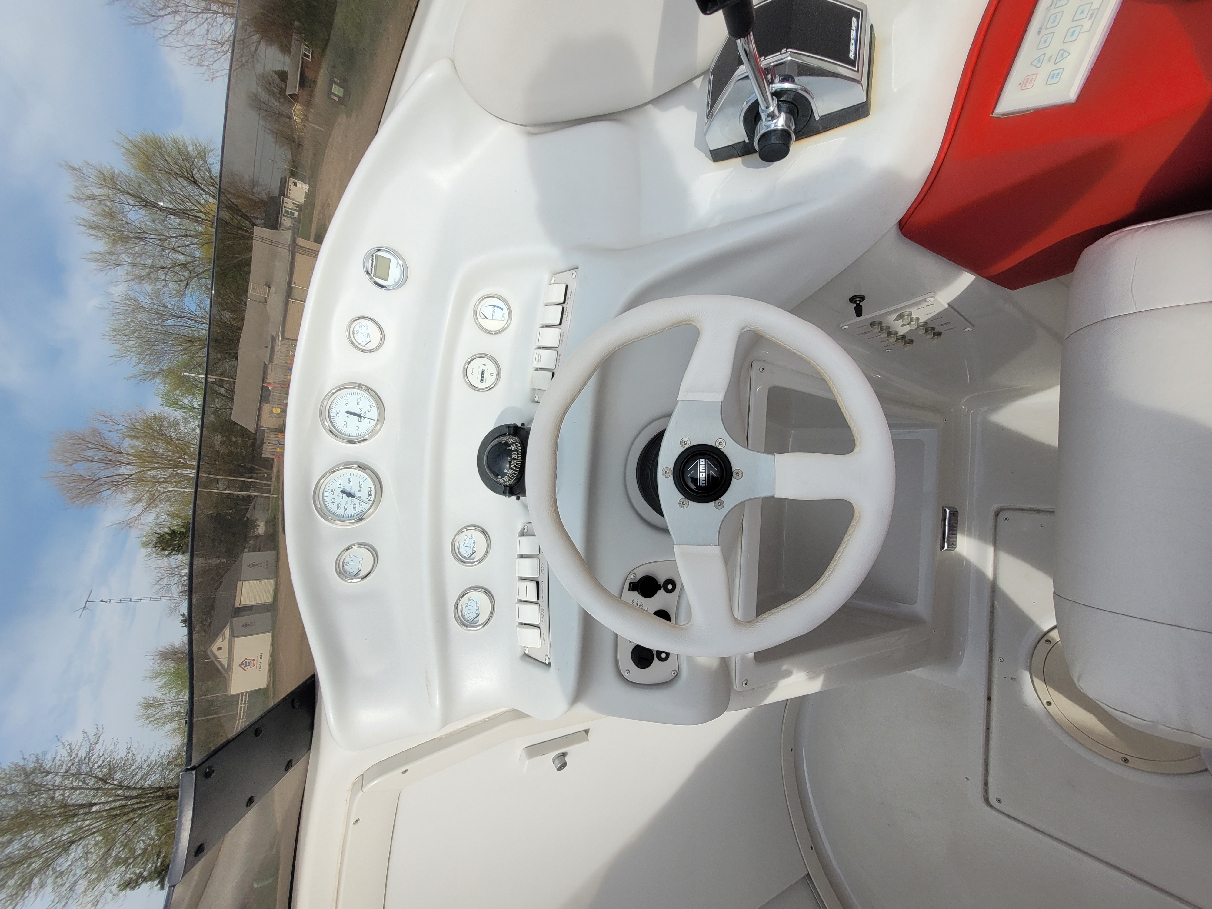 This is one super sharp looking boat. It comes completely ready to go. It fits great on the triple axle trailer. Call for an appointment. It is powered with a 7.4 Mercury EFI 340HP with only 268 Hours.