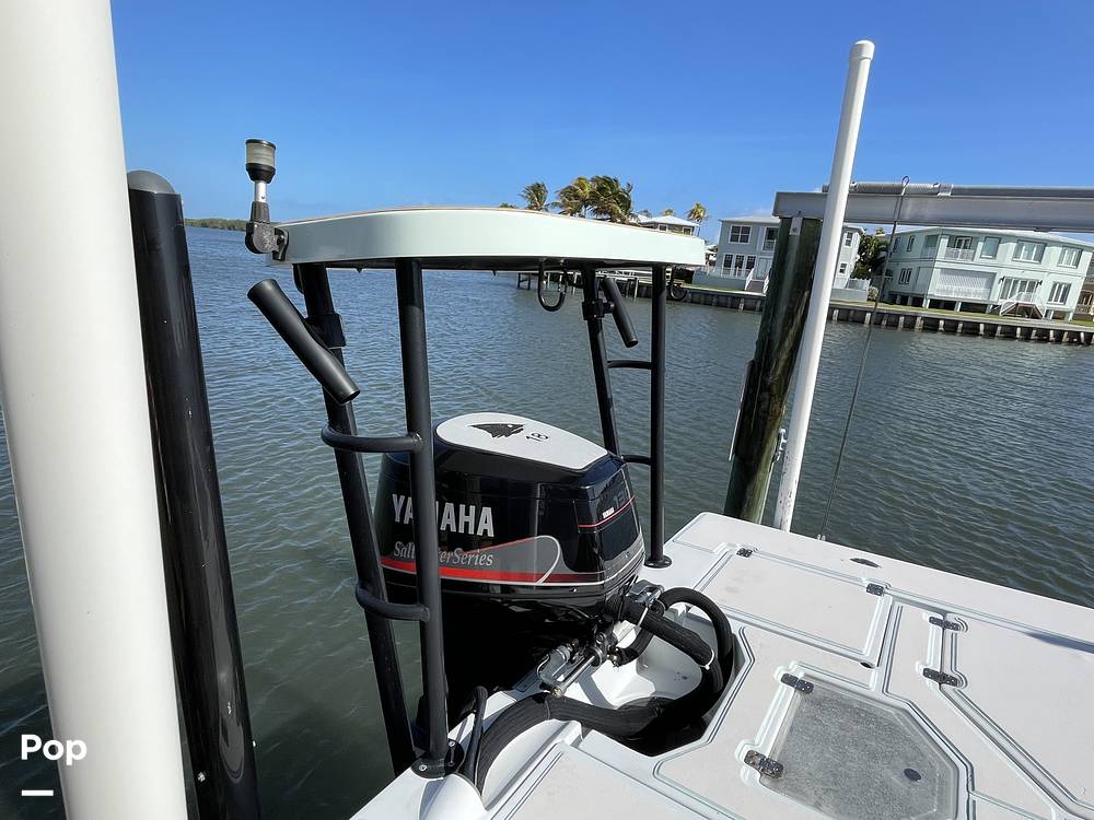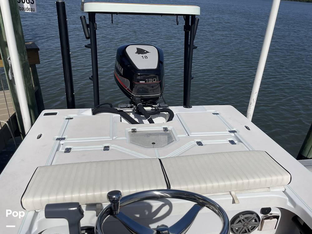 This boat looks great and has everything you need! Included is a Minn Kota trolling motor with remote, SeaDek covers all decks and soles and push platform, a 6' Power pole with remote, Lentine Trim tabs and controls, Garmin 950 3d chartplotter with extra nav chip.