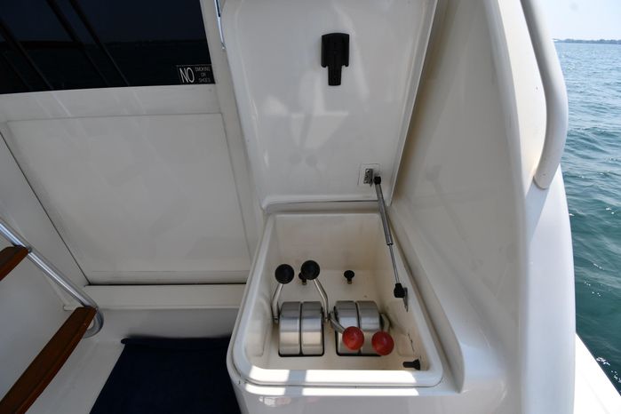 Features Twin MAN D2840 LE401 820-hp Diesel Engine's with 1990 original hours (Note Aft Deck Controls to Starboard - 2000 hour maintenance records on file Feb '25). Notable features include but are not limited to the following: Air-Conditioning & Heat (4-Units - Includes Bridge AC/Heat), (2) Head's (NEW Raritan Electric-Flush) w/Vanity/Sink/Stall-Shower's, Central Vacuum System, Washer / Dryer, Onan 12.5-kw Generator w/2180-hours, Windlass Anchor, Complete Electronics Package (Icom VHF Marine Radio's, Garmin 8622 Color / TouchScreen Display w/Radar/GPS/Chartplotter/Sounder - JL-Audio / Fusion Control - Secondary Garmin 10" MFD Overhear, Robertson AP 300X Autopilot, Starlink Internet, AIS Receiver / Transponder), Custom Aft Deck Awning (Tubular Aluminum w/Stamoid-Top), Bow-Davit w/Avon 11' Tender Tender & Mercury 20-hp Motor, and MUCH more!