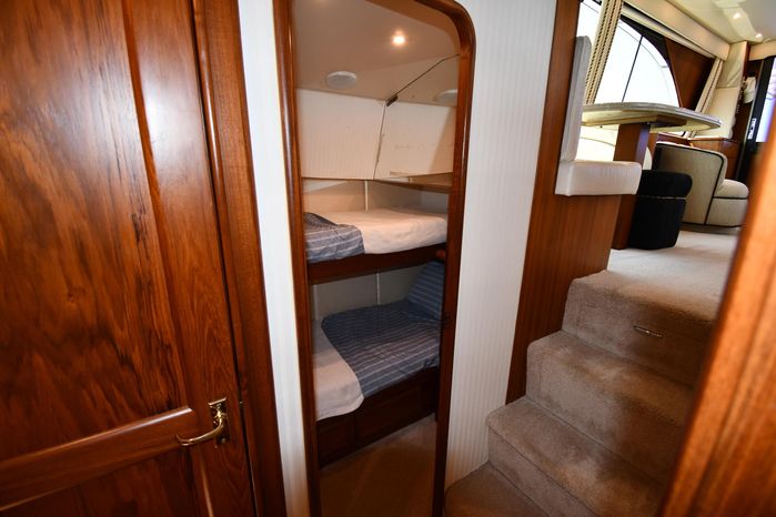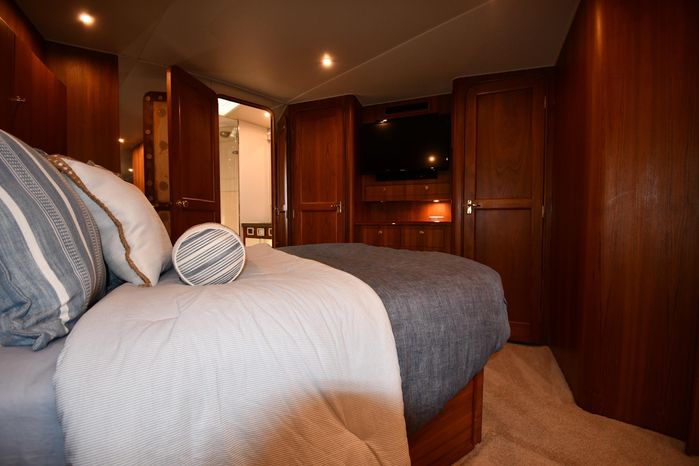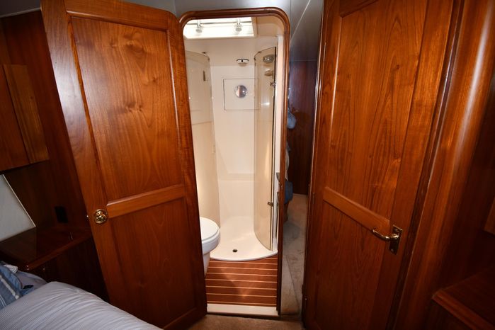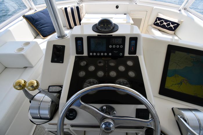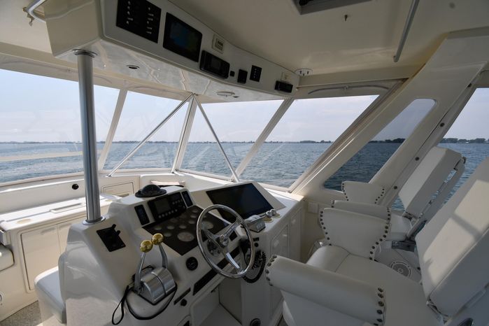 Broker Notes: 2025 Marine Survey on file. 2000 hr Engine Service Feb '25, Both Torsional Engine Couplers NEW April '25, Updated NAV-System, Fusion Sound System w/JL-Audio, Bridge AC/Heat, Bow & Stern-Thrusters, Starlink Internet, 4-Sided EZ2CY Bridge Enclosure, Bow Shorepower Connection, Spare 4-Blade Nibral Props, Spare Shaft, Custom 4-Drawer Stainless-Steel Galley Refrigerator / Freezers, NEW Interior Carpeting 2024, Custom Teak Cockpit Table w/Chairs, Remote Control Salon Blinds .. This is one to try and capture! Inside boat-house stored. Sale includes owners manuals. Highly recommended by listing agent!