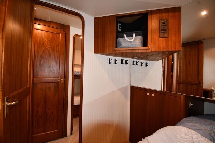 Features Twin MAN D2840 LE401 820-hp Diesel Engine's with 1990 original hours (Note Aft Deck Controls to Starboard - 2000 hour maintenance records on file Feb '25). Notable features include but are not limited to the following: Air-Conditioning & Heat (4-Units - Includes Bridge AC/Heat), (2) Head's (NEW Raritan Electric-Flush) w/Vanity/Sink/Stall-Shower's, Central Vacuum System, Washer / Dryer, Onan 12.5-kw Generator w/2180-hours, Windlass Anchor, Complete Electronics Package (Icom VHF Marine Radio's, Garmin 8622 Color / TouchScreen Display w/Radar/GPS/Chartplotter/Sounder - JL-Audio / Fusion Control - Secondary Garmin 10" MFD Overhear, Robertson AP 300X Autopilot, Starlink Internet, AIS Receiver / Transponder), Custom Aft Deck Awning (Tubular Aluminum w/Stamoid-Top), Bow-Davit w/Avon 11' Tender Tender & Mercury 20-hp Motor, and MUCH more!