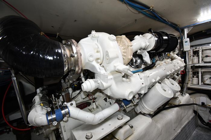 Features Twin MAN D2840 LE401 820-hp Diesel Engine's with 1990 original hours (Note Aft Deck Controls to Starboard - 2000 hour maintenance records on file Feb '25). Notable features include but are not limited to the following: Air-Conditioning & Heat (4-Units - Includes Bridge AC/Heat), (2) Head's (NEW Raritan Electric-Flush) w/Vanity/Sink/Stall-Shower's, Central Vacuum System, Washer / Dryer, Onan 12.5-kw Generator w/2180-hours, Windlass Anchor, Complete Electronics Package (Icom VHF Marine Radio's, Garmin 8622 Color / TouchScreen Display w/Radar/GPS/Chartplotter/Sounder - JL-Audio / Fusion Control - Secondary Garmin 10" MFD Overhear, Robertson AP 300X Autopilot, Starlink Internet, AIS Receiver / Transponder), Custom Aft Deck Awning (Tubular Aluminum w/Stamoid-Top), Bow-Davit w/Avon 11' Tender Tender & Mercury 20-hp Motor, and MUCH more!