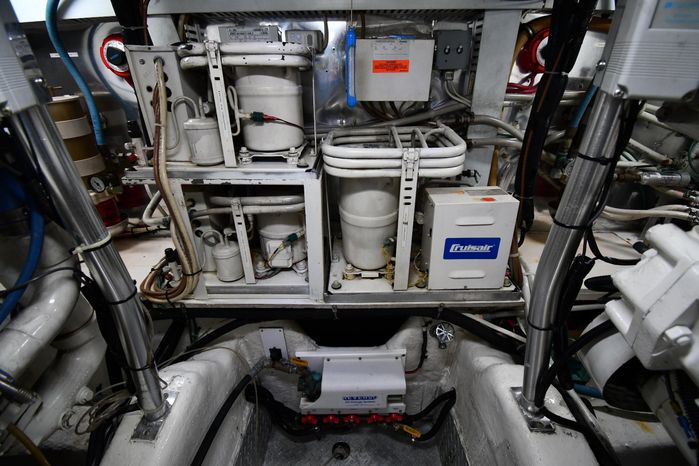 Features Twin MAN D2840 LE401 820-hp Diesel Engine's with 1990 original hours (Note Aft Deck Controls to Starboard - 2000 hour maintenance records on file Feb '25). Notable features include but are not limited to the following: Air-Conditioning & Heat (4-Units - Includes Bridge AC/Heat), (2) Head's (NEW Raritan Electric-Flush) w/Vanity/Sink/Stall-Shower's, Central Vacuum System, Washer / Dryer, Onan 12.5-kw Generator w/2180-hours, Windlass Anchor, Complete Electronics Package (Icom VHF Marine Radio's, Garmin 8622 Color / TouchScreen Display w/Radar/GPS/Chartplotter/Sounder - JL-Audio / Fusion Control - Secondary Garmin 10" MFD Overhear, Robertson AP 300X Autopilot, Starlink Internet, AIS Receiver / Transponder), Custom Aft Deck Awning (Tubular Aluminum w/Stamoid-Top), Bow-Davit w/Avon 11' Tender Tender & Mercury 20-hp Motor, and MUCH more!