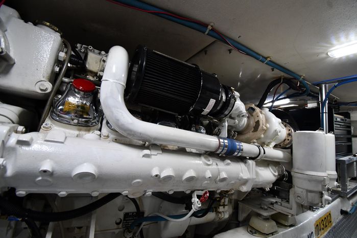 Features Twin MAN D2840 LE401 820-hp Diesel Engine's with 1990 original hours (Note Aft Deck Controls to Starboard - 2000 hour maintenance records on file Feb '25). Notable features include but are not limited to the following: Air-Conditioning & Heat (4-Units - Includes Bridge AC/Heat), (2) Head's (NEW Raritan Electric-Flush) w/Vanity/Sink/Stall-Shower's, Central Vacuum System, Washer / Dryer, Onan 12.5-kw Generator w/2180-hours, Windlass Anchor, Complete Electronics Package (Icom VHF Marine Radio's, Garmin 8622 Color / TouchScreen Display w/Radar/GPS/Chartplotter/Sounder - JL-Audio / Fusion Control - Secondary Garmin 10" MFD Overhear, Robertson AP 300X Autopilot, Starlink Internet, AIS Receiver / Transponder), Custom Aft Deck Awning (Tubular Aluminum w/Stamoid-Top), Bow-Davit w/Avon 11' Tender Tender & Mercury 20-hp Motor, and MUCH more!