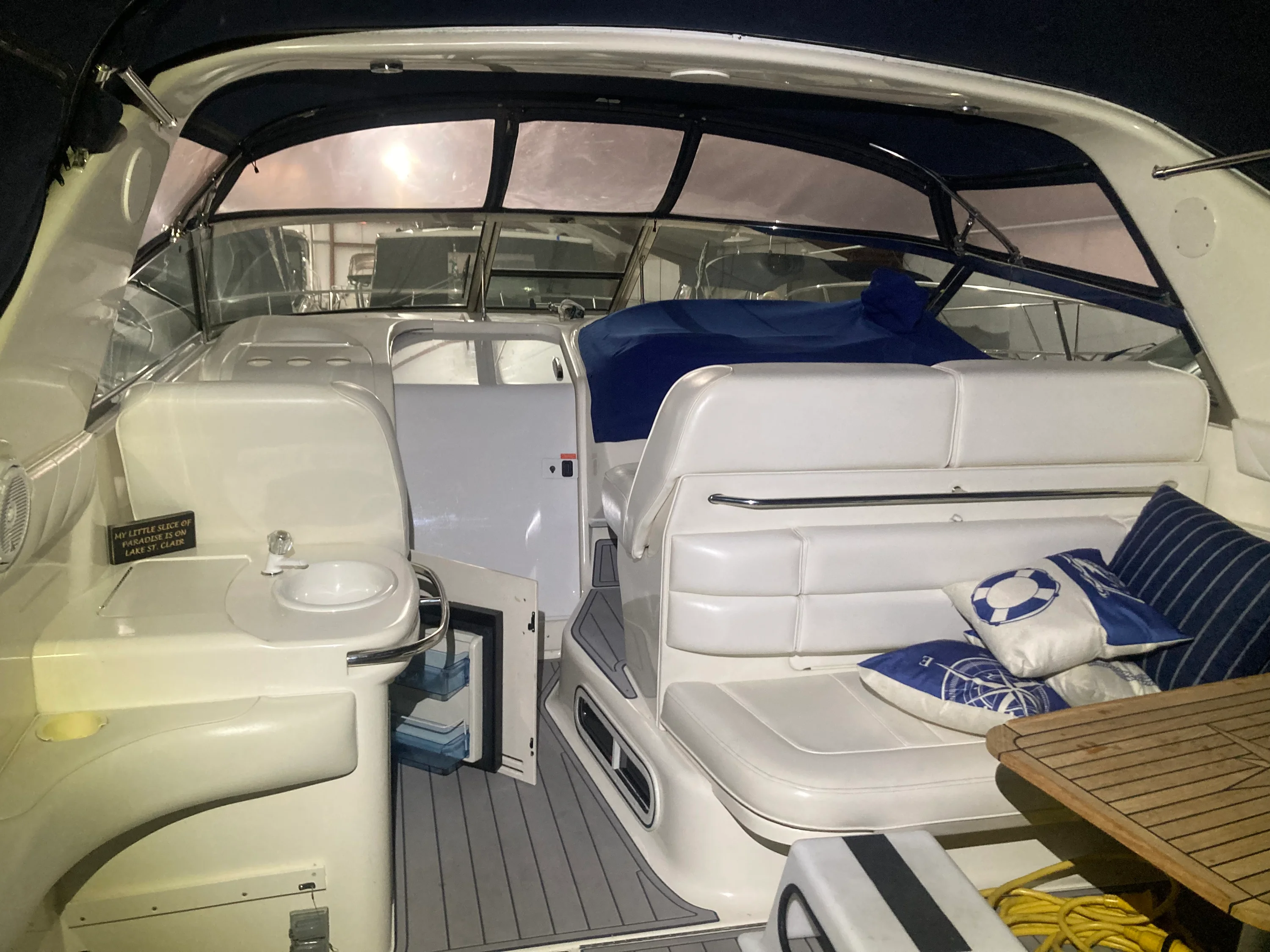 Cockpit: Recent Canvas/Eisenglass, U-Shaped Seating, Wet Bar with Sink.