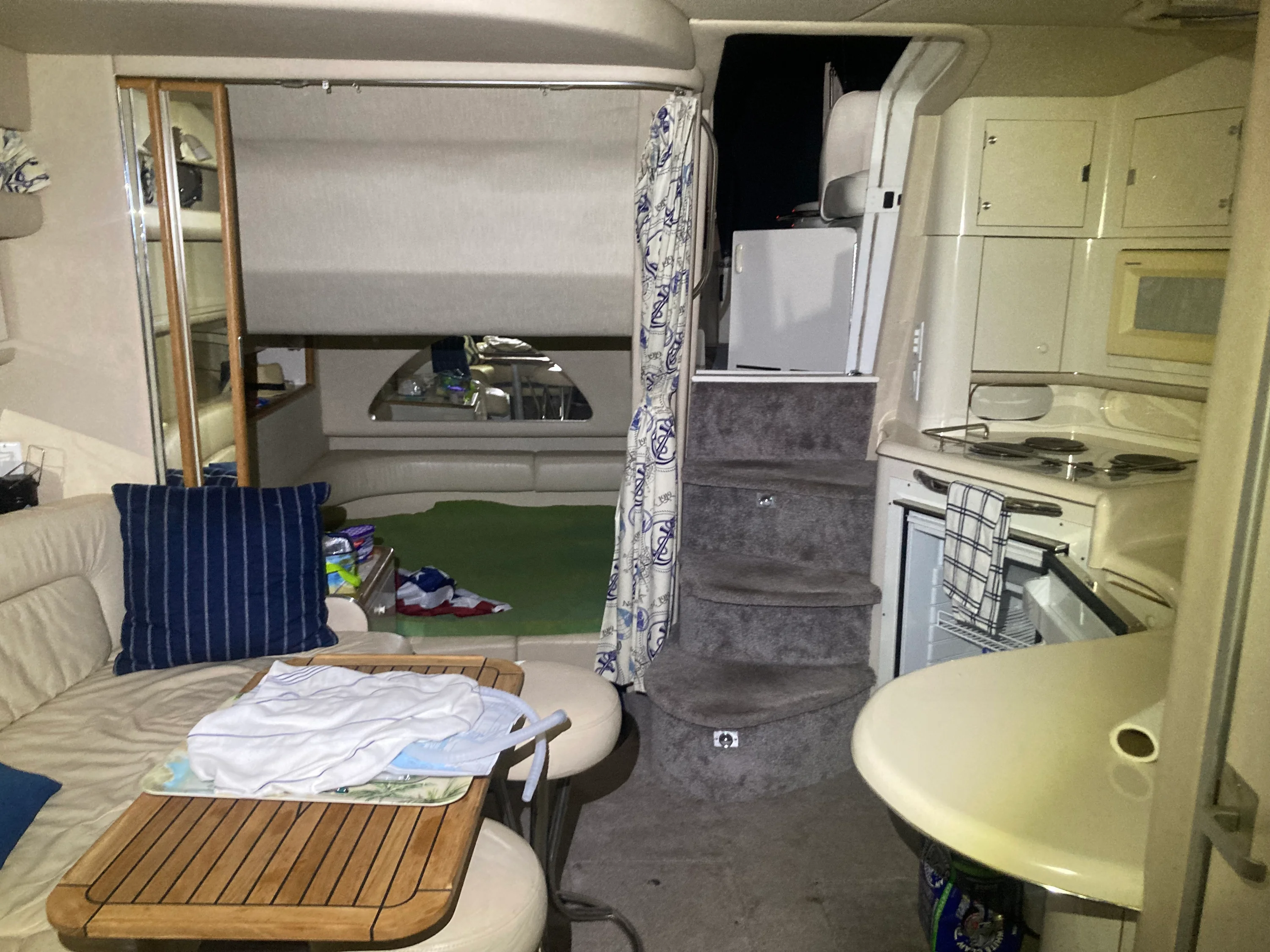 Interior: Spotless cabin with a large forward island bed, mid-cabin lounge, and fully equipped galley (fridge, microwave, stove). Runs flawlessly and is ready for the water. Don't miss this opportunity to own a legendary Sea Ray model in top condition. Located in Harrison Township. Price: $64,999