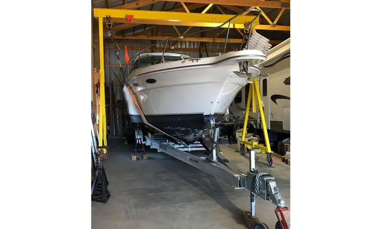 Equipped with generator and air conditioning, this 330 Sundancer is ready for extended trips and comfortable overnighting at anchor or the dock. A triple-axle aluminum trailer is included, offering flexibility for transport, storage, or long-distance cruising plans.