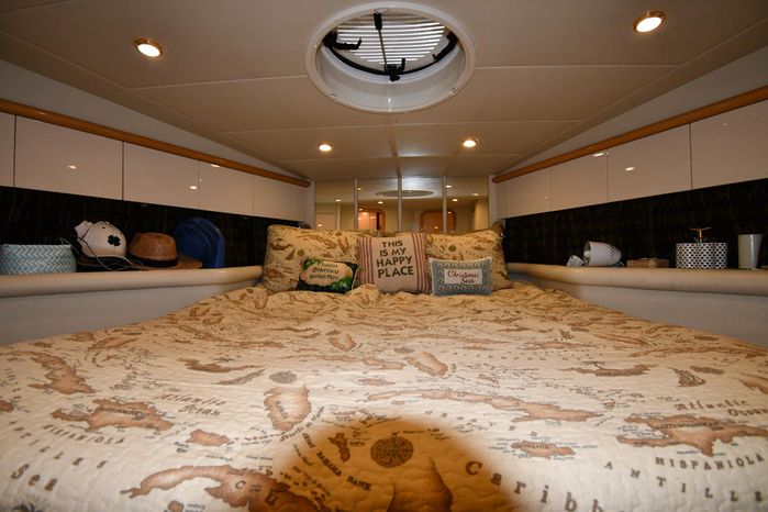 Freshwater / Great Lakes boat since new this vessel features Twin Detroit Diesel 8V92 DDEC 760-hp Diesel Engine's. Notable features include but are not limited to the following: Air-Conditioning & Heat (3-Units) - Note Forward Unit NEW, (2) Head's (Electric-Flush) w/Vanity/Sink/Stall-Shower, 3-Stateroom Layout (see photos), Windlass Anchor (NEW), NEW Generator (130 hrs) w/NEMA 2000, Updated Garmin NAV-System w/Dual 7612 XSV Display's w/Garmin HD-Radar/GPS/Chartplotter, Robertson Autopilot, Premium Fusion Sound System (Note 3-AMP's, JL-Audio Speakers, JL-Audio Sub-Woofer, JL-Audio Tower Speakers on Radar Arch, Forward Bow Sun-Pad (NEW) w/Cover, Snap-in Snap-out Cockpit Carpeting (NEW), Cockpit Wet Bar w/Sink/Ice-Maker/Freezer, and MUCH more!