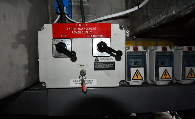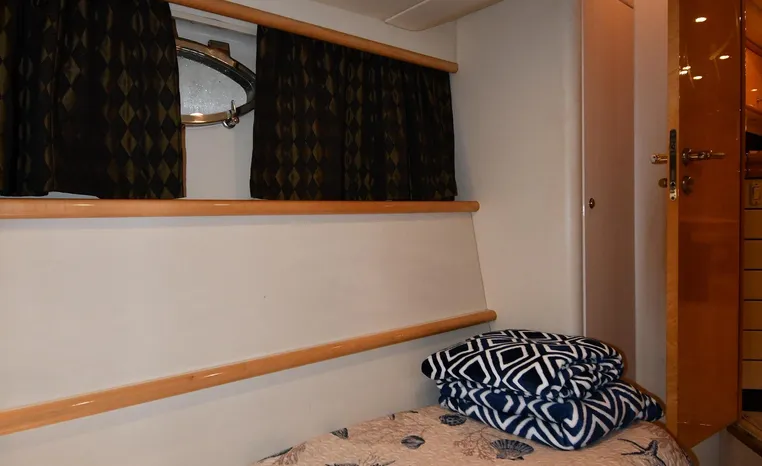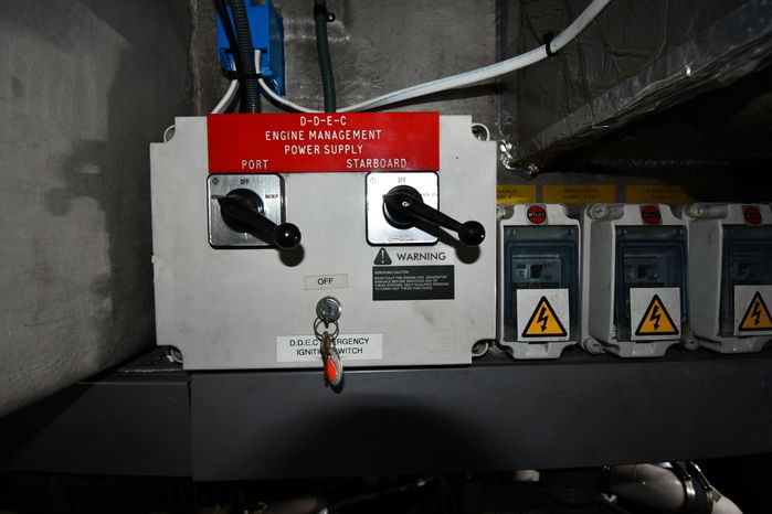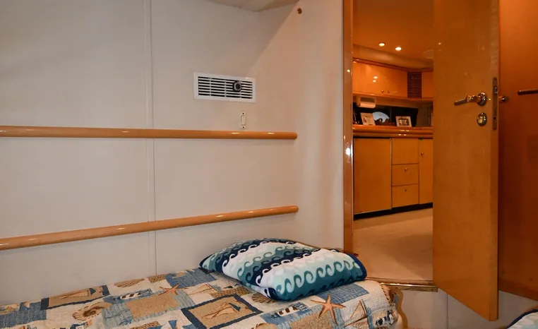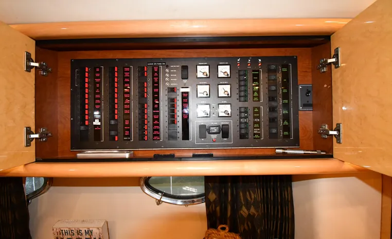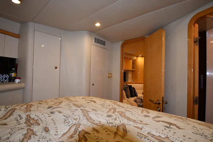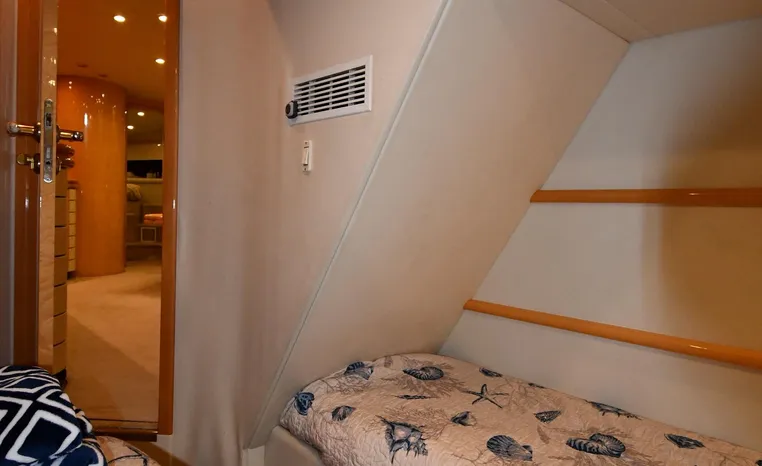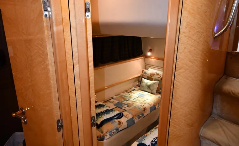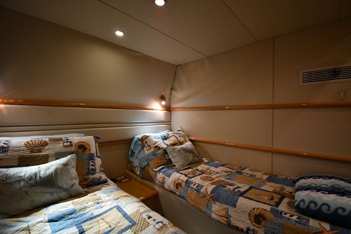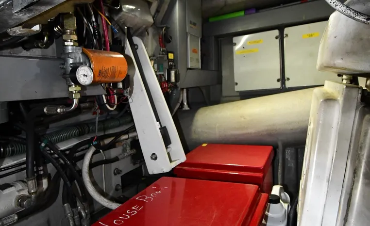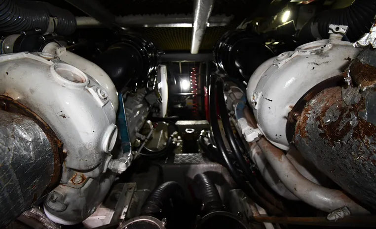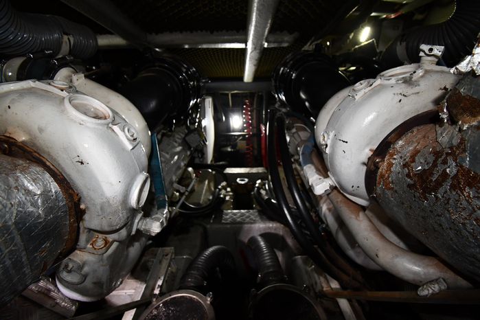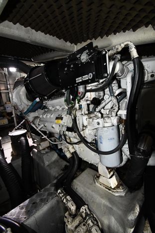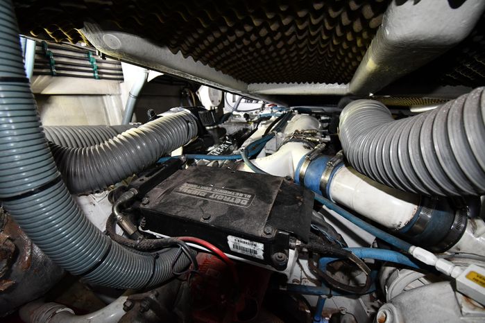 Broker Notes:. Inside boathouse kept year-round (heated winters) - exterior finish on boat shows in above average condition. Note transmissions rebuilt JAN '16. Desirable 3-stateroom 2-head layout, tender garage w/launch/recovery. NEW Generator w/NEMA 2000 Interface, NEW Forward AC/Heat Unit. Located on-site and shown by appointment only.