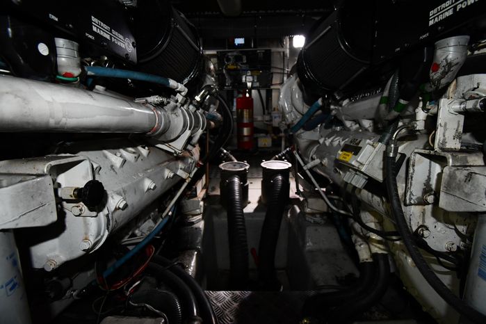 Freshwater / Great Lakes boat since new this vessel features Twin Detroit Diesel 8V92 DDEC 760-hp Diesel Engine's. Notable features include but are not limited to the following: Air-Conditioning & Heat (3-Units) - Note Forward Unit NEW, (2) Head's (Electric-Flush) w/Vanity/Sink/Stall-Shower, 3-Stateroom Layout (see photos), Windlass Anchor (NEW), NEW Generator (130 hrs) w/NEMA 2000, Updated Garmin NAV-System w/Dual 7612 XSV Display's w/Garmin HD-Radar/GPS/Chartplotter, Robertson Autopilot, Premium Fusion Sound System (Note 3-AMP's, JL-Audio Speakers, JL-Audio Sub-Woofer, JL-Audio Tower Speakers on Radar Arch, Forward Bow Sun-Pad (NEW) w/Cover, Snap-in Snap-out Cockpit Carpeting (NEW), Cockpit Wet Bar w/Sink/Ice-Maker/Freezer, and MUCH more!