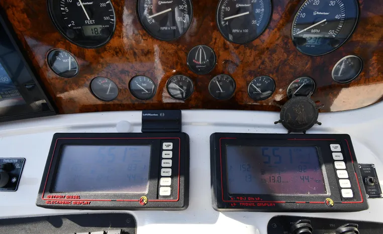 Freshwater / Great Lakes boat since new this vessel features Twin Detroit Diesel 8V92 DDEC 760-hp Diesel Engine's. Notable features include but are not limited to the following: Air-Conditioning & Heat (3-Units) - Note Forward Unit NEW, (2) Head's (Electric-Flush) w/Vanity/Sink/Stall-Shower, 3-Stateroom Layout (see photos), Windlass Anchor (NEW), NEW Generator (130 hrs) w/NEMA 2000, Updated Garmin NAV-System w/Dual 7612 XSV Display's w/Garmin HD-Radar/GPS/Chartplotter, Robertson Autopilot, Premium Fusion Sound System (Note 3-AMP's, JL-Audio Speakers, JL-Audio Sub-Woofer, JL-Audio Tower Speakers on Radar Arch, Forward Bow Sun-Pad (NEW) w/Cover, Snap-in Snap-out Cockpit Carpeting (NEW), Cockpit Wet Bar w/Sink/Ice-Maker/Freezer, and MUCH more!