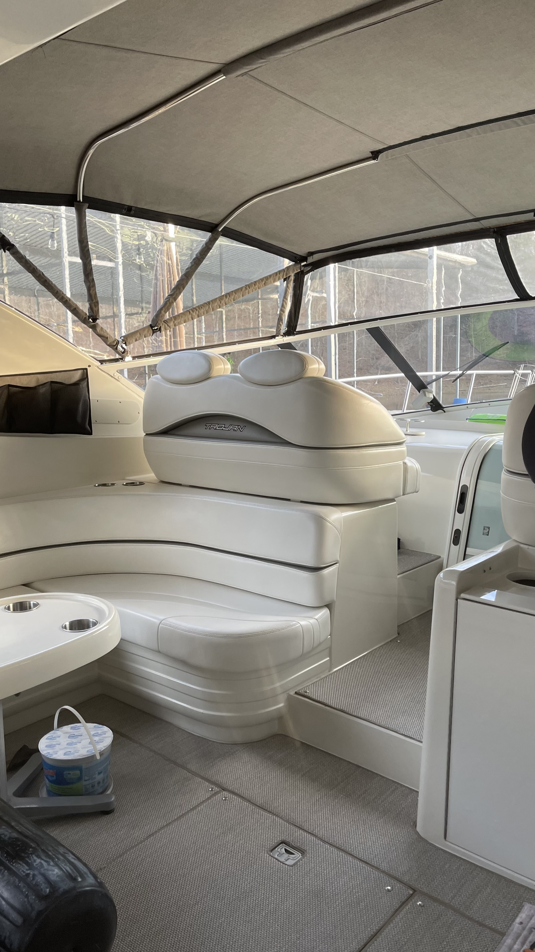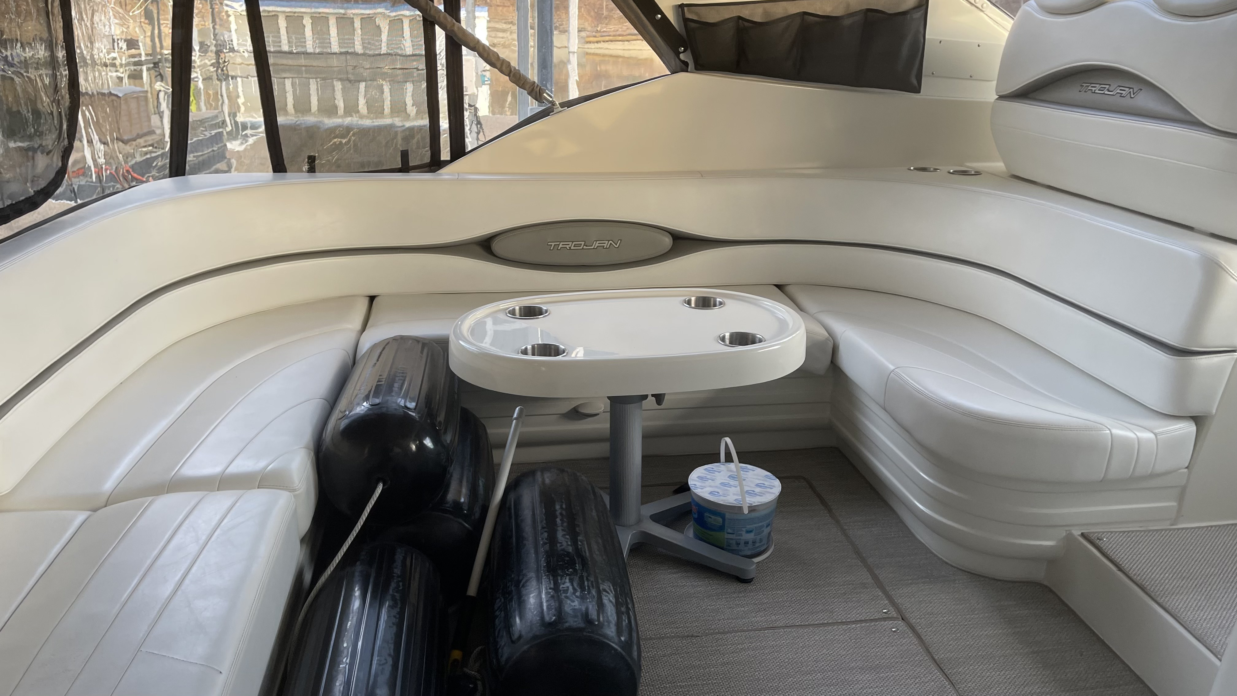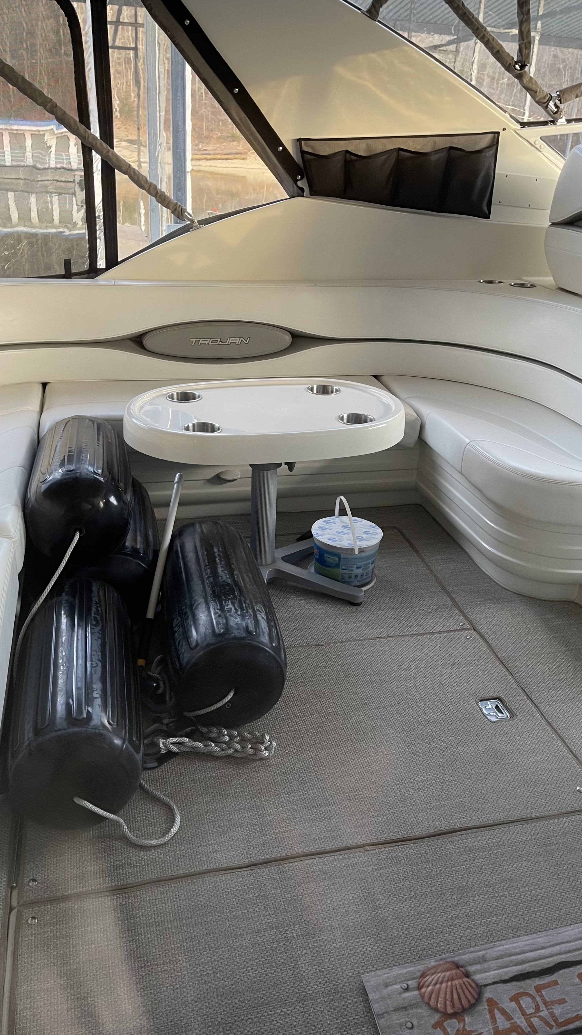 Trojan express cruiser 440, twin caterpillars 3126 diesel 420hp (400 hrs), runs excellent, 44' plus 4' platform, 15' beam, kohler marine diesel generator 8k (200 hrs), there are two private staterooms and two heads with stall showers, a full-service galley, and storage galore. Topsides the helm is very comfortable and has excellent sightlines for the captain. The cockpit is huge with comfortable seating for a crowd, washer/dryer combo, new fresh water pressure pump and new vinyl flooring...