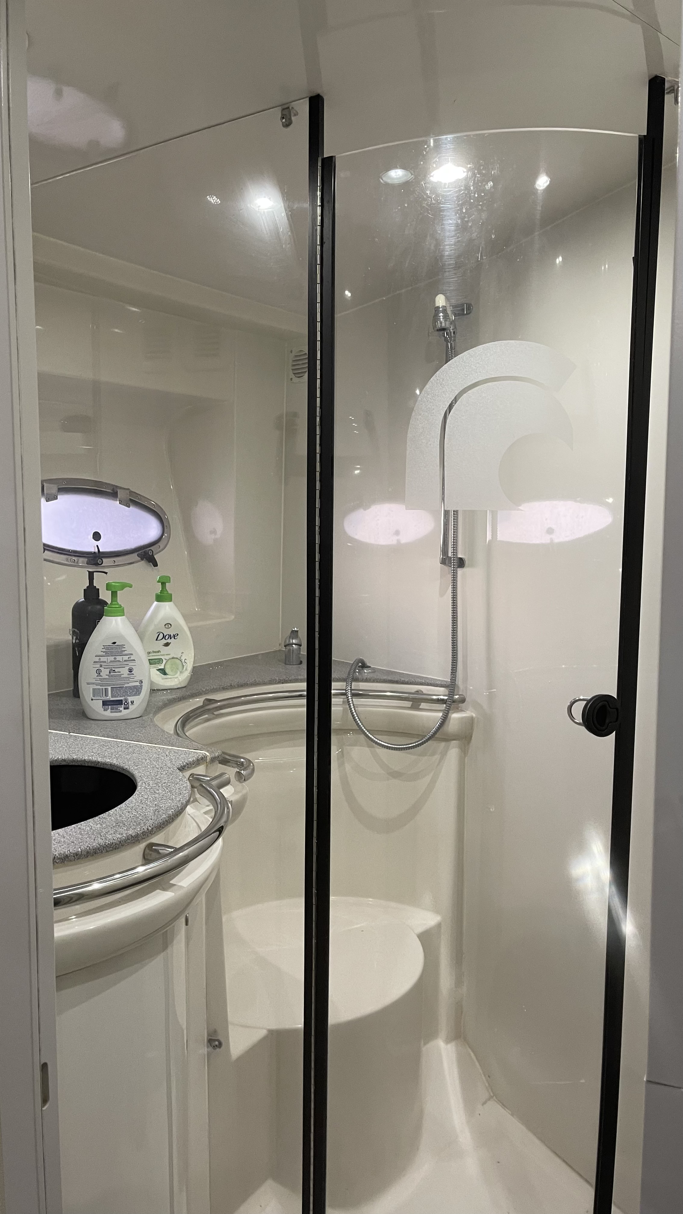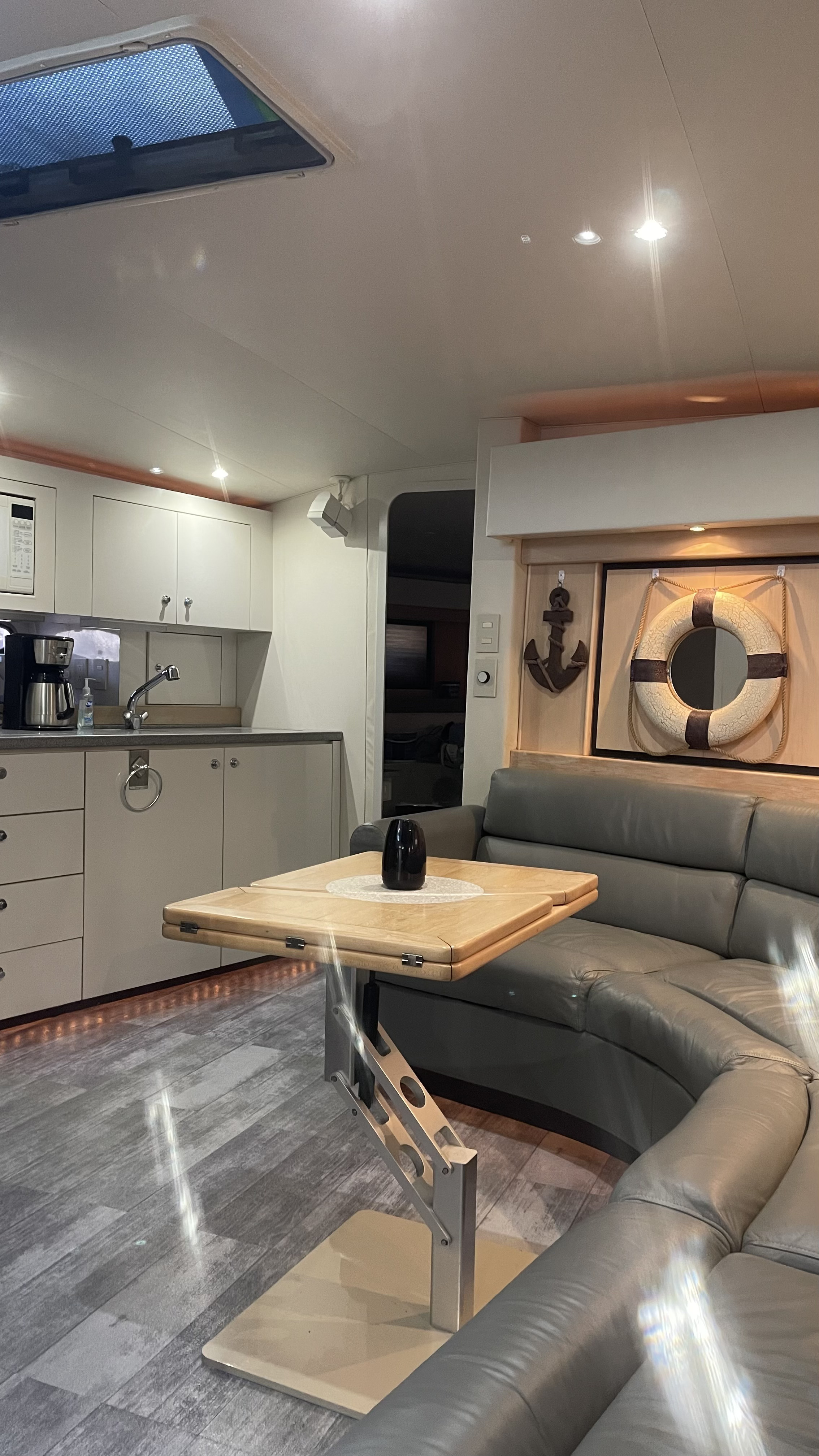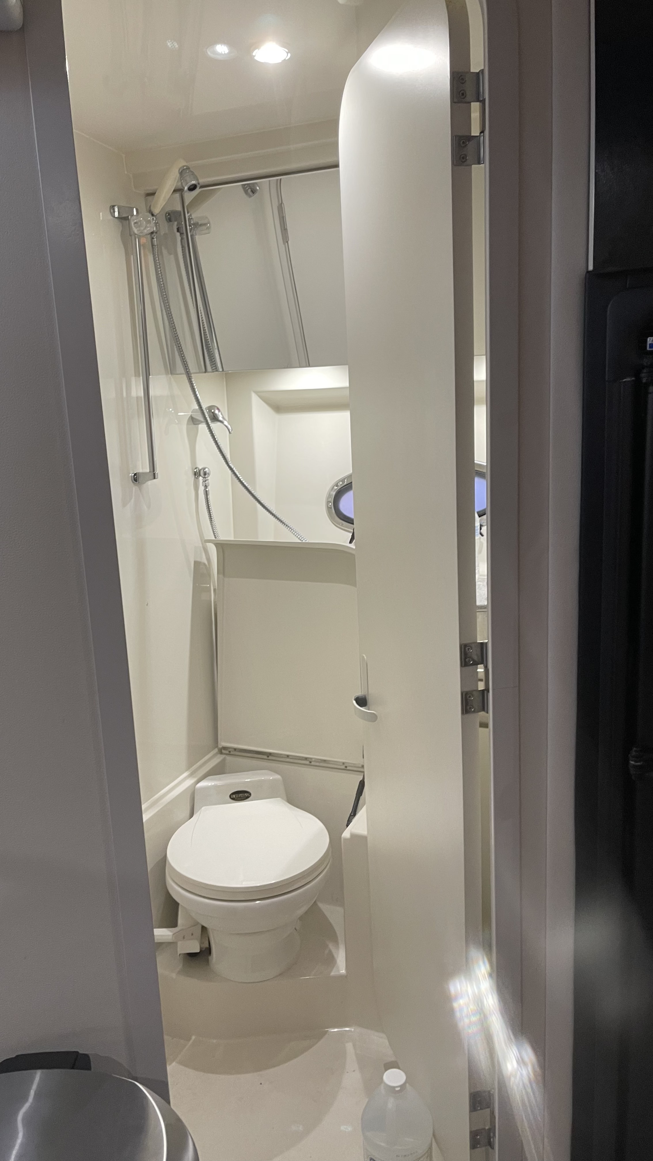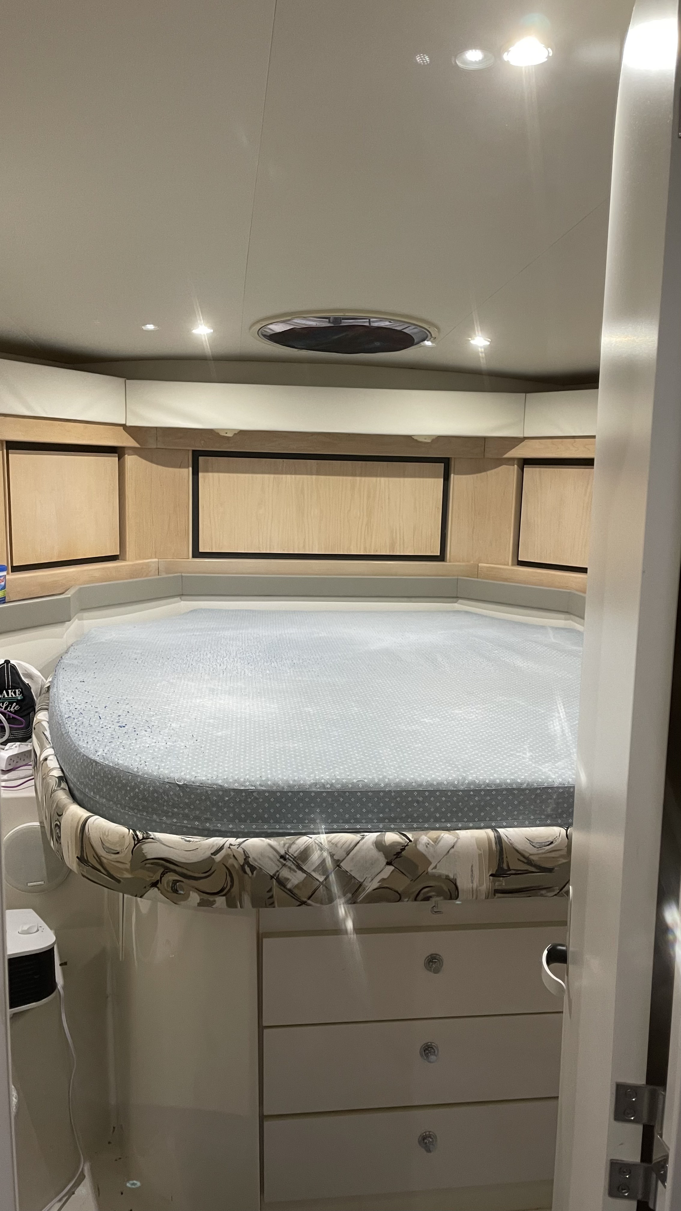 Trojan express cruiser 440, twin caterpillars 3126 diesel 420hp (400 hrs), runs excellent, 44' plus 4' platform, 15' beam, kohler marine diesel generator 8k (200 hrs), there are two private staterooms and two heads with stall showers, a full-service galley, and storage galore. Topsides the helm is very comfortable and has excellent sightlines for the captain. The cockpit is huge with comfortable seating for a crowd, washer/dryer combo, new fresh water pressure pump and new vinyl flooring...