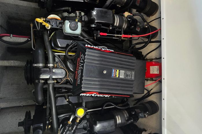 Freshwater / Great Lakes boat since new, this vessel features Twin Mercury 454 Magnum with Bravo I drives with only 300 original hours. Notable features include but are not limited to the following: Silent choice exhaust, Bolster Seats, Power Engine Hatch, New Lower outdrives and props, and MUCH more!
