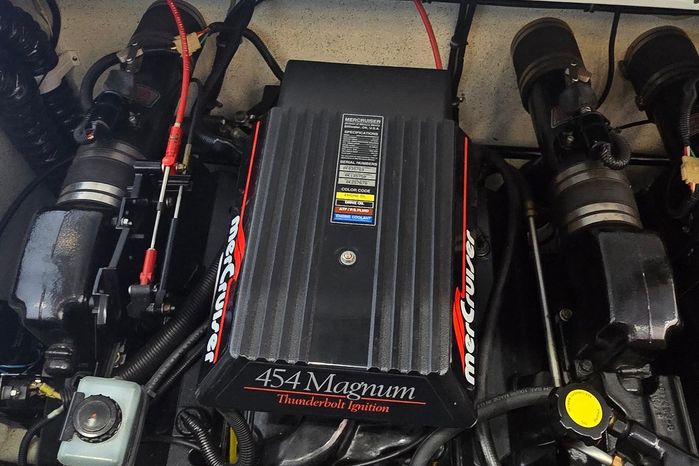 Freshwater / Great Lakes boat since new, this vessel features Twin Mercury 454 Magnum with Bravo I drives with only 300 original hours. Notable features include but are not limited to the following: Silent choice exhaust, Bolster Seats, Power Engine Hatch, New Lower outdrives and props, and MUCH more!