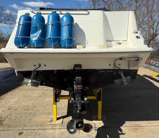 Freshwater use only this vessel features a Single 5.7-litre 260-hp MerCruiser Gas Engine with Alpha I Sterndrive! Notable features include but are not limited to the following: Shoreland'r Tandem Axle Bunk Trailer, Sleeping Accommodations for Four, Enclosed Head (Manual Flush) w/Vanity/Sink/Shower, Electronics Package (VHF Marine Radio Humminbird Depth Sound), AM/FM Stereo System w/CD-Player, Bimini Top Canvas Package w/Camper Back & Screens, Snap-in Snap-out Cockpit Carpeting, and MUCH more!