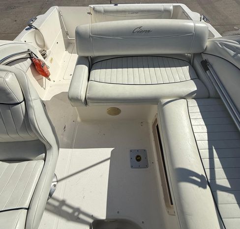 Freshwater use only this vessel features a Single 5.7-litre 260-hp MerCruiser Gas Engine with Alpha I Sterndrive! Notable features include but are not limited to the following: Shoreland'r Tandem Axle Bunk Trailer, Sleeping Accommodations for Four, Enclosed Head (Manual Flush) w/Vanity/Sink/Shower, Electronics Package (VHF Marine Radio Humminbird Depth Sound), AM/FM Stereo System w/CD-Player, Bimini Top Canvas Package w/Camper Back & Screens, Snap-in Snap-out Cockpit Carpeting, and MUCH more!