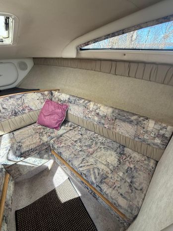 Freshwater use only this vessel features a Single 5.7-litre 260-hp MerCruiser Gas Engine with Alpha I Sterndrive! Notable features include but are not limited to the following: Shoreland'r Tandem Axle Bunk Trailer, Sleeping Accommodations for Four, Enclosed Head (Manual Flush) w/Vanity/Sink/Shower, Electronics Package (VHF Marine Radio Humminbird Depth Sound), AM/FM Stereo System w/CD-Player, Bimini Top Canvas Package w/Camper Back & Screens, Snap-in Snap-out Cockpit Carpeting, and MUCH more!