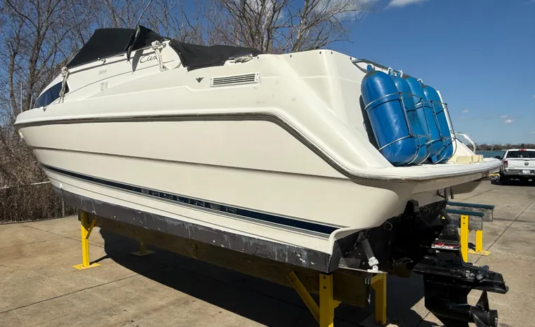Freshwater use only this vessel features a Single 5.7-litre 260-hp MerCruiser Gas Engine with Alpha I Sterndrive! Notable features include but are not limited to the following: Shoreland'r Tandem Axle Bunk Trailer, Sleeping Accommodations for Four, Enclosed Head (Manual Flush) w/Vanity/Sink/Shower, Electronics Package (VHF Marine Radio Humminbird Depth Sound), AM/FM Stereo System w/CD-Player, Bimini Top Canvas Package w/Camper Back & Screens, Snap-in Snap-out Cockpit Carpeting, and MUCH more!