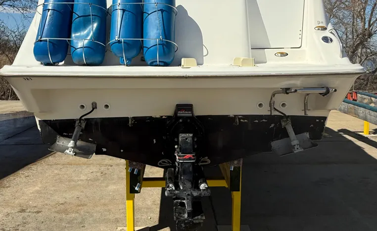 Freshwater use only this vessel features a Single 5.7-litre 260-hp MerCruiser Gas Engine with Alpha I Sterndrive! Notable features include but are not limited to the following: Shoreland'r Tandem Axle Bunk Trailer, Sleeping Accommodations for Four, Enclosed Head (Manual Flush) w/Vanity/Sink/Shower, Electronics Package (VHF Marine Radio Humminbird Depth Sound), AM/FM Stereo System w/CD-Player, Bimini Top Canvas Package w/Camper Back & Screens, Snap-in Snap-out Cockpit Carpeting, and MUCH more!