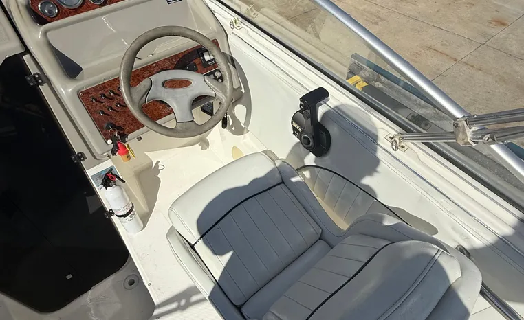 Freshwater use only this vessel features a Single 5.7-litre 260-hp MerCruiser Gas Engine with Alpha I Sterndrive! Notable features include but are not limited to the following: Shoreland'r Tandem Axle Bunk Trailer, Sleeping Accommodations for Four, Enclosed Head (Manual Flush) w/Vanity/Sink/Shower, Electronics Package (VHF Marine Radio Humminbird Depth Sound), AM/FM Stereo System w/CD-Player, Bimini Top Canvas Package w/Camper Back & Screens, Snap-in Snap-out Cockpit Carpeting, and MUCH more!
