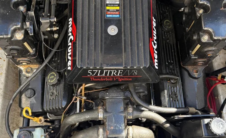 Freshwater use only this vessel features a Single 5.7-litre 260-hp MerCruiser Gas Engine with Alpha I Sterndrive! Notable features include but are not limited to the following: Shoreland'r Tandem Axle Bunk Trailer, Sleeping Accommodations for Four, Enclosed Head (Manual Flush) w/Vanity/Sink/Shower, Electronics Package (VHF Marine Radio Humminbird Depth Sound), AM/FM Stereo System w/CD-Player, Bimini Top Canvas Package w/Camper Back & Screens, Snap-in Snap-out Cockpit Carpeting, and MUCH more!
