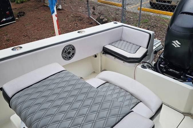 On deck, you’ll find a practical fishing layout with a livewell and clear sightlines, while the GPS and fish finder handle the hunt. Fusion head unit with JBL speakers and amplifier brings the soundtrack, and a security system adds peace of mind at the dock. Delivered with a Continental trailer for easy hauling.