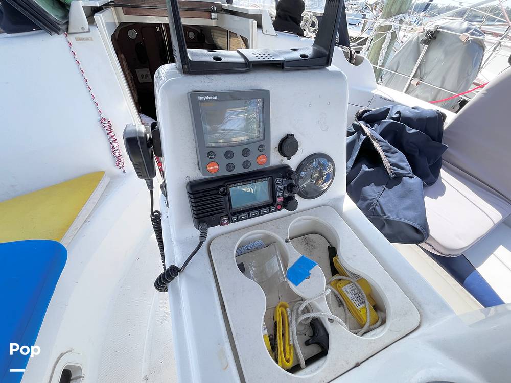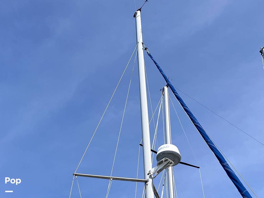This boat is rigged with an in-mast main sail and roller furling jib. Sheets and halyards lead back to the cockpit and are controlled by 5 hammer clutches. Autopilot, Simrad Go09 multi-function unit, radar, tri-date screens, and VHF radio are at the helm for the captain.