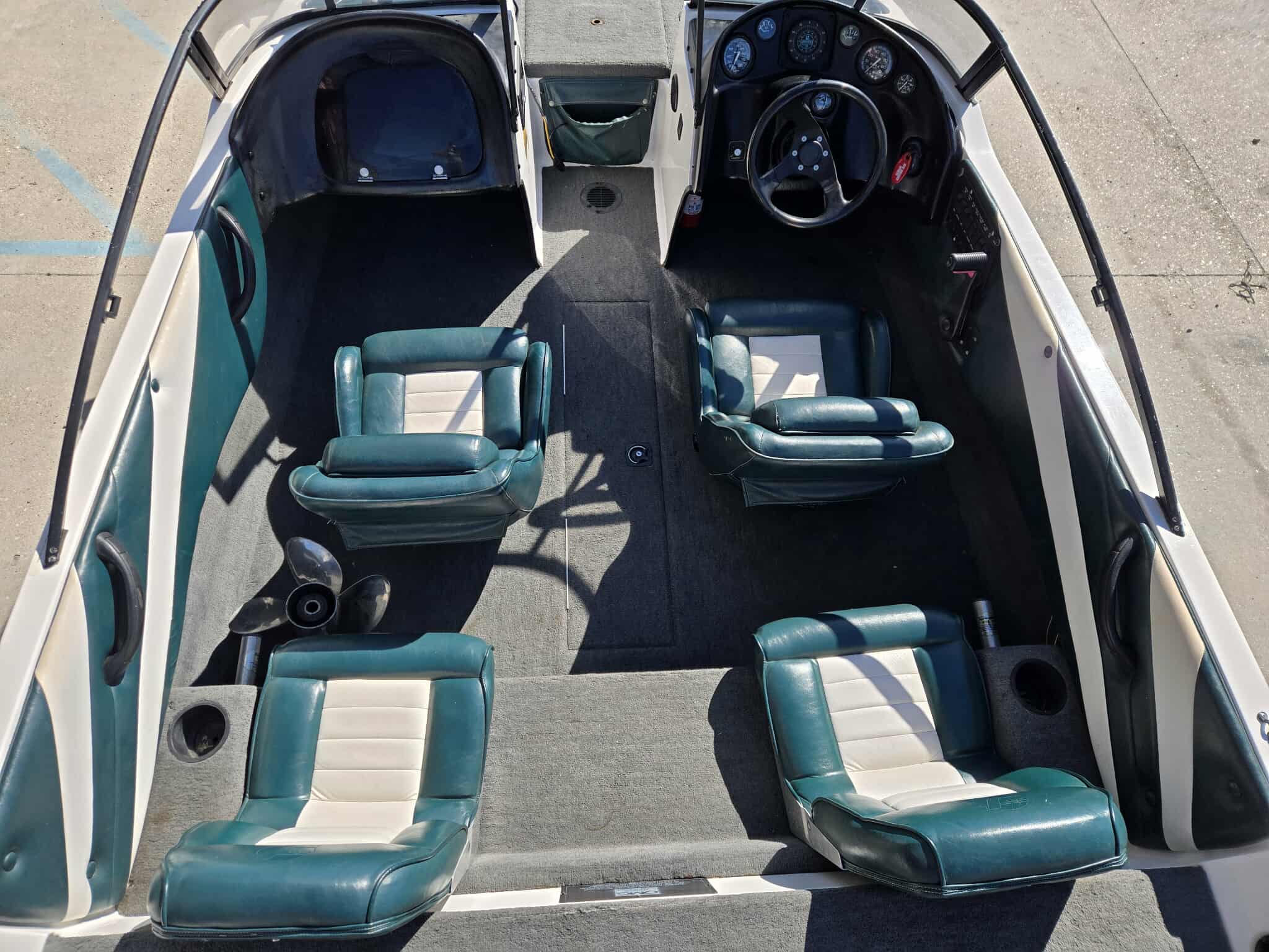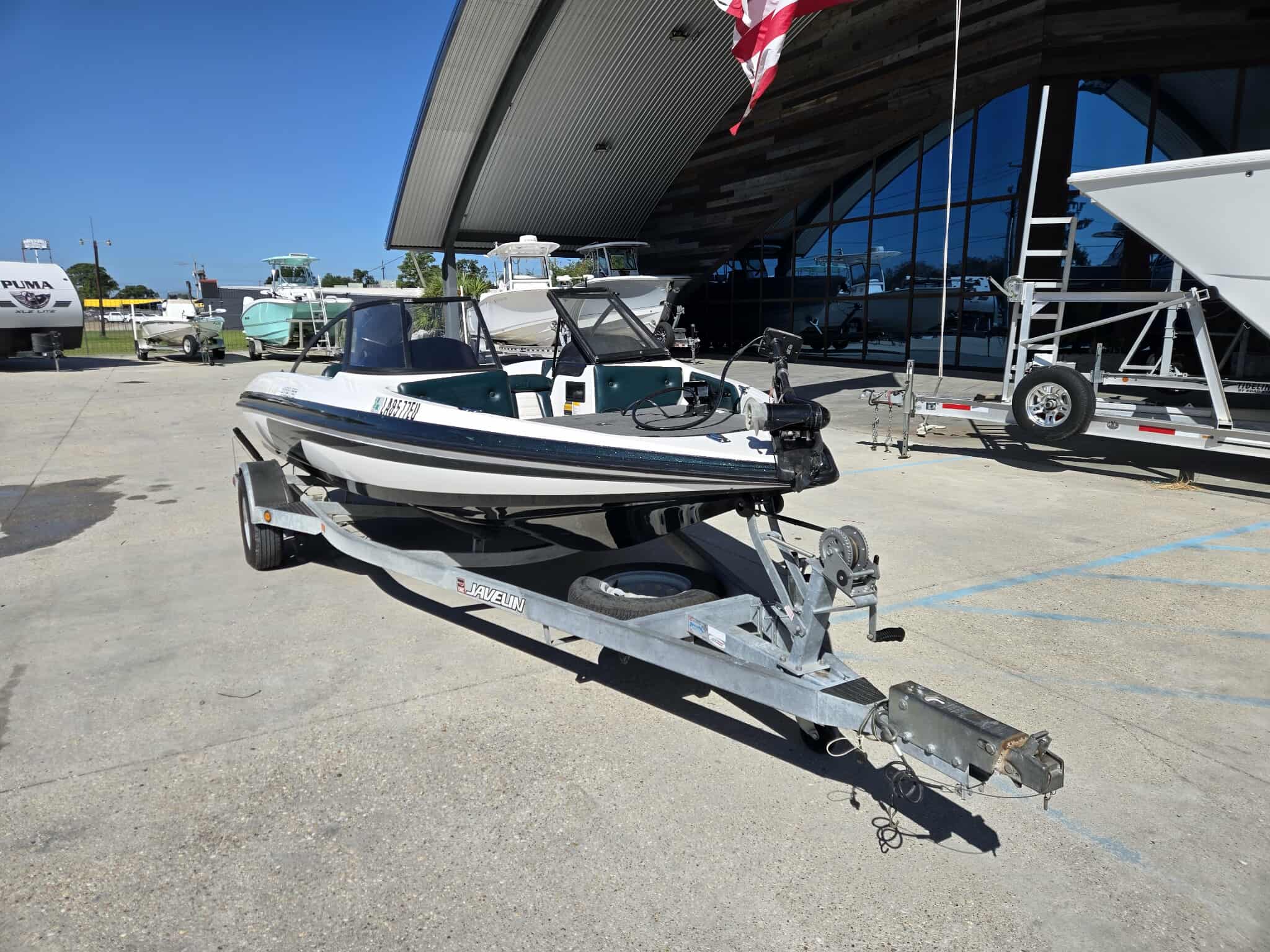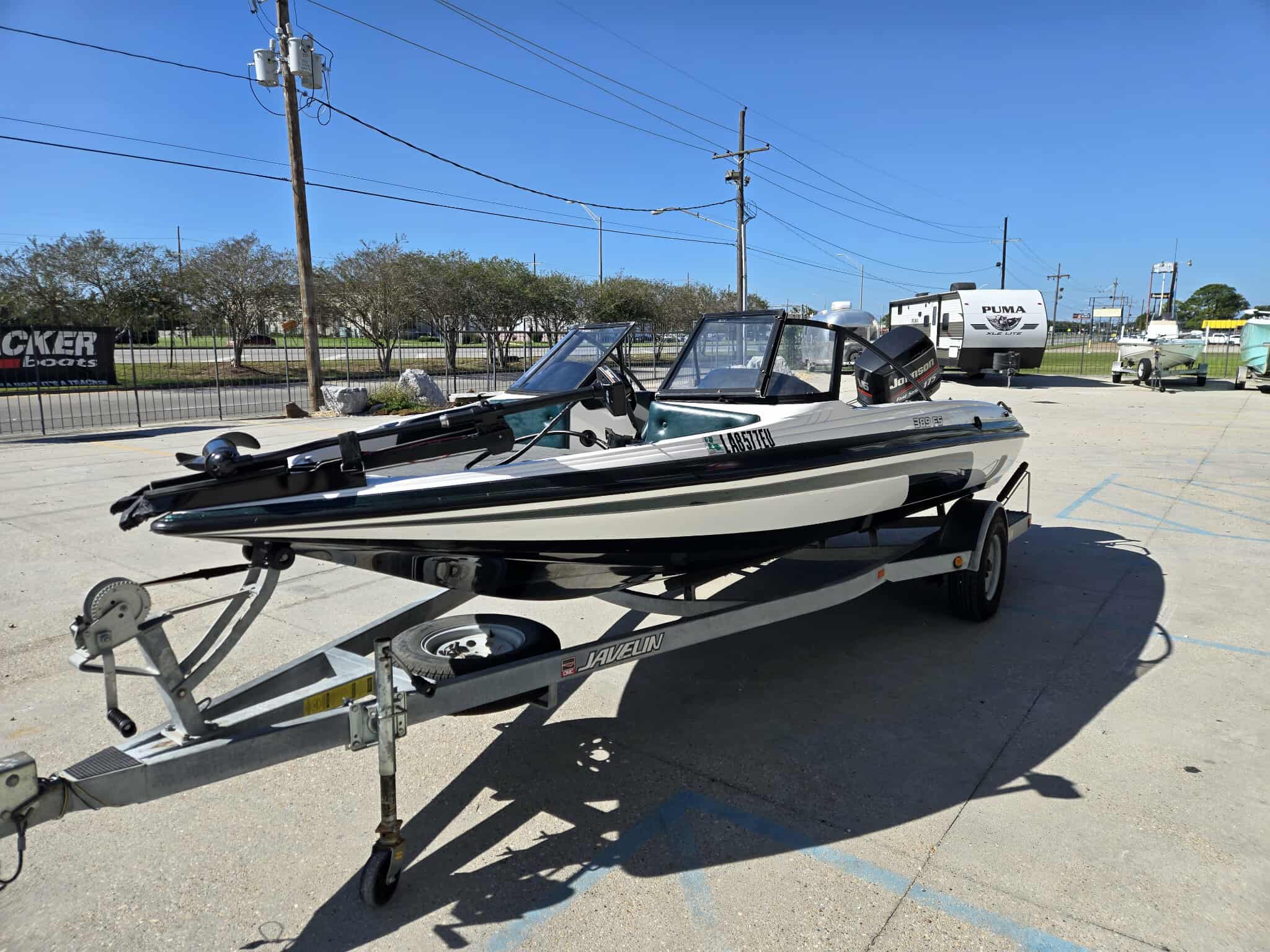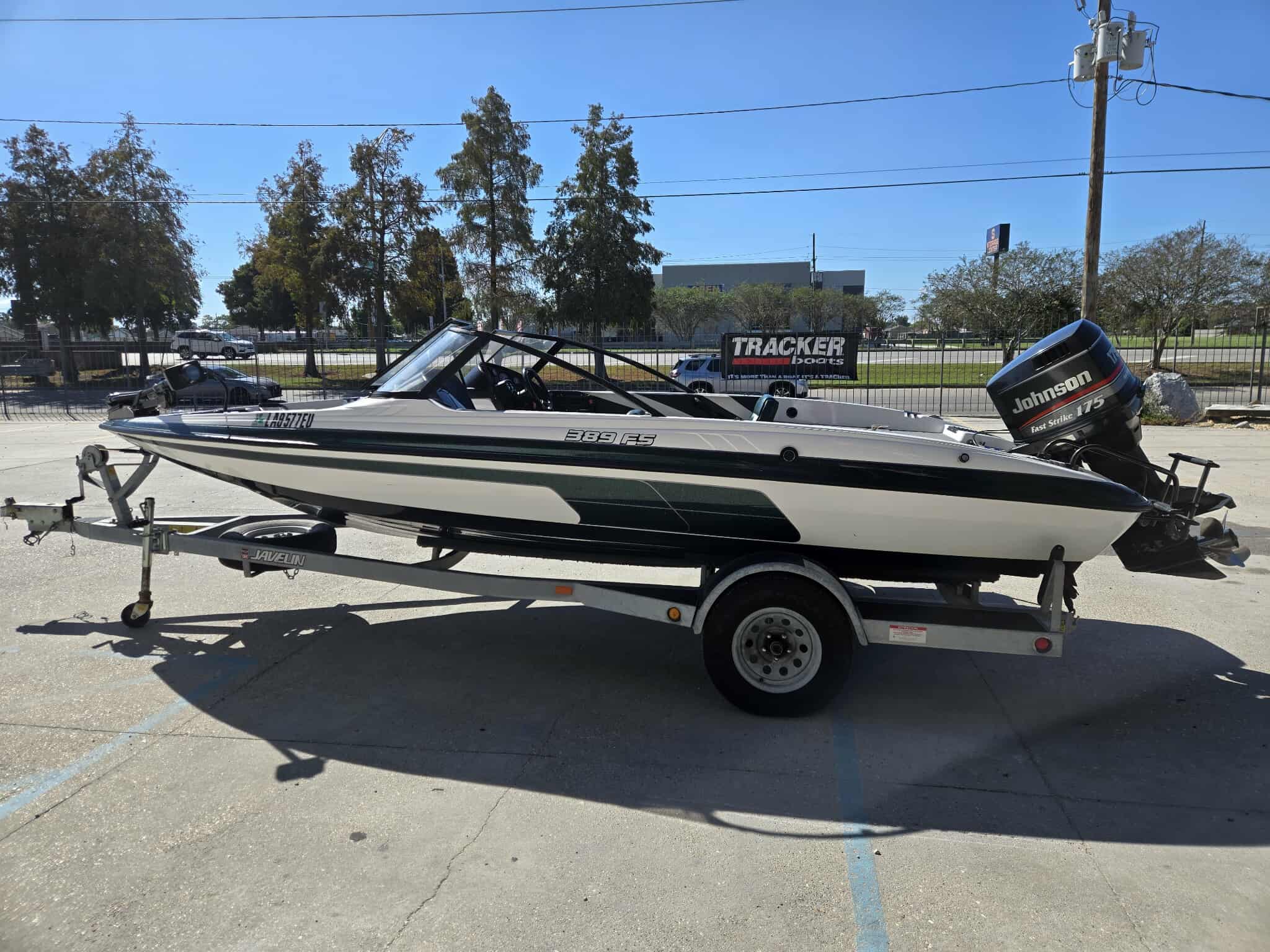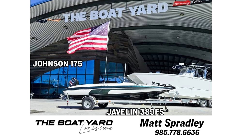The Javelin 389 FS is a 19-foot fiberglass, outboard fishing boat with a beam of 7'5" and a net weight of about 1,590 pounds. It was a model from the mid-to-late 1990s and is part of the Javelin bass boat line, known for its racing-style appearance. This specific model was designed to be powered by a 175 horsepower outboard engine.