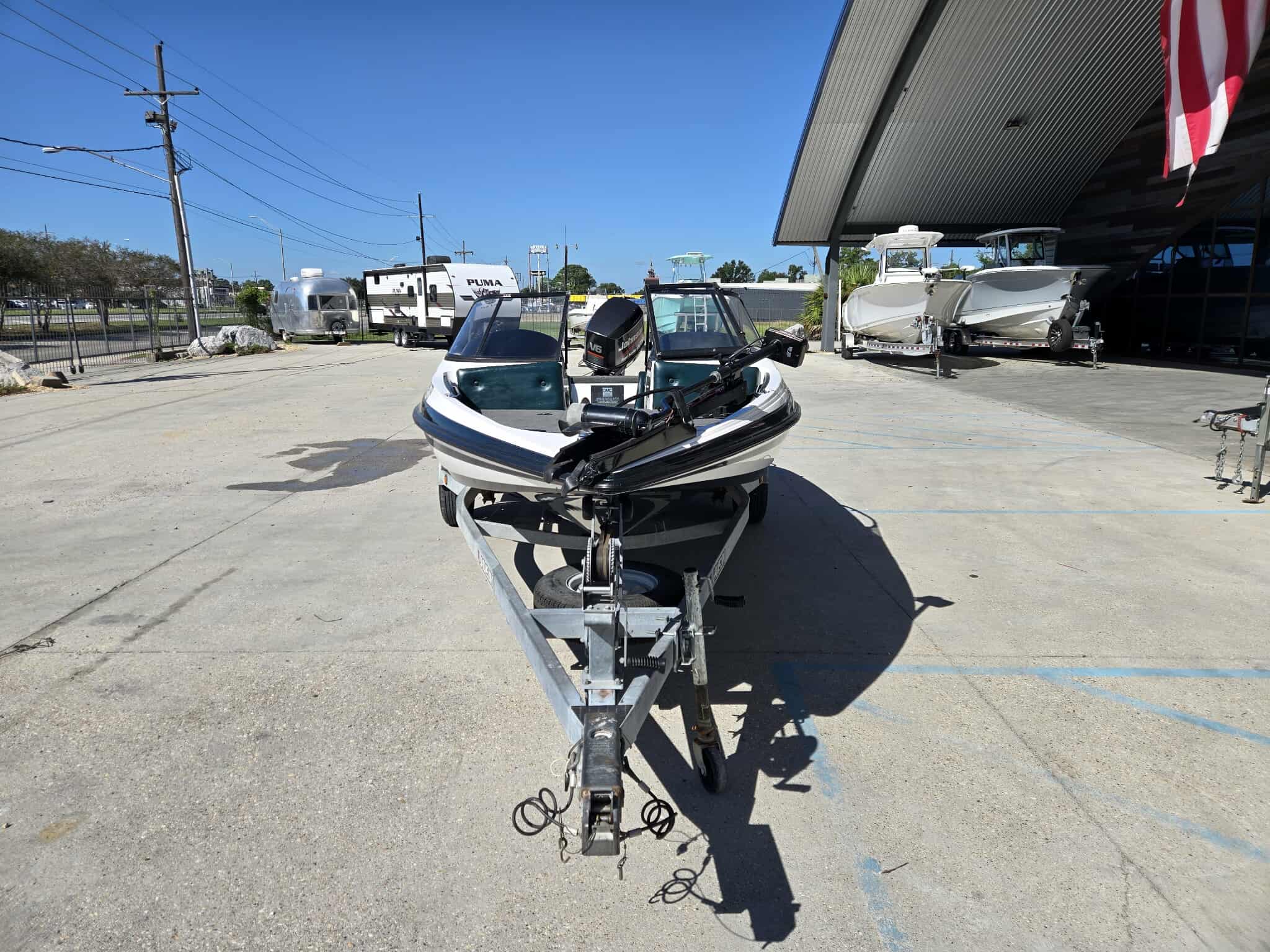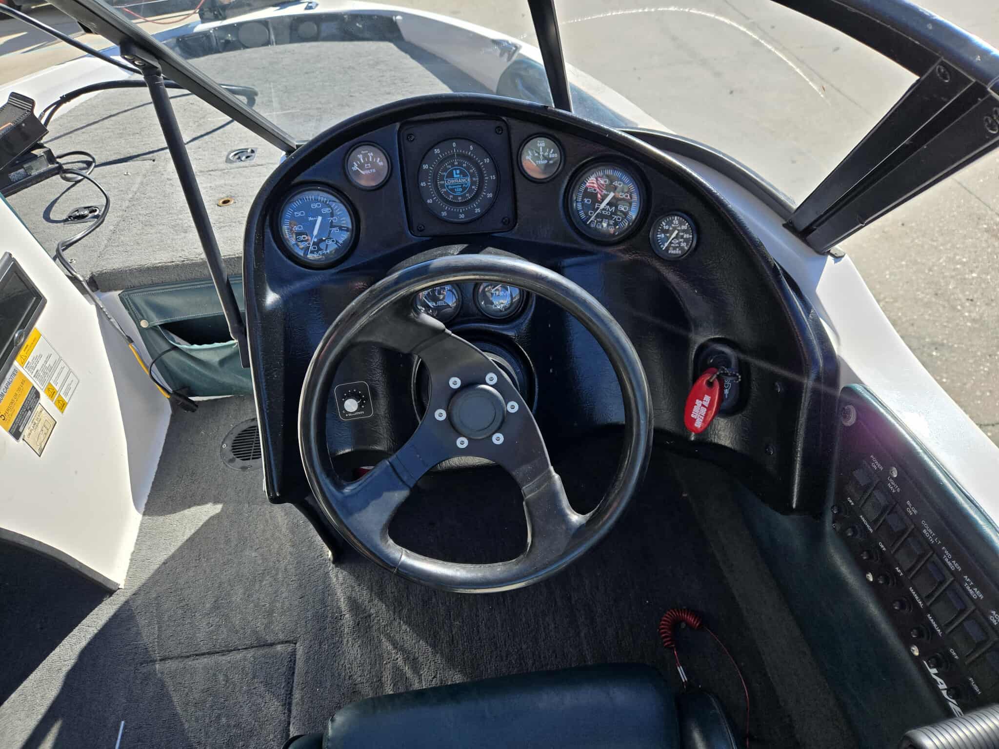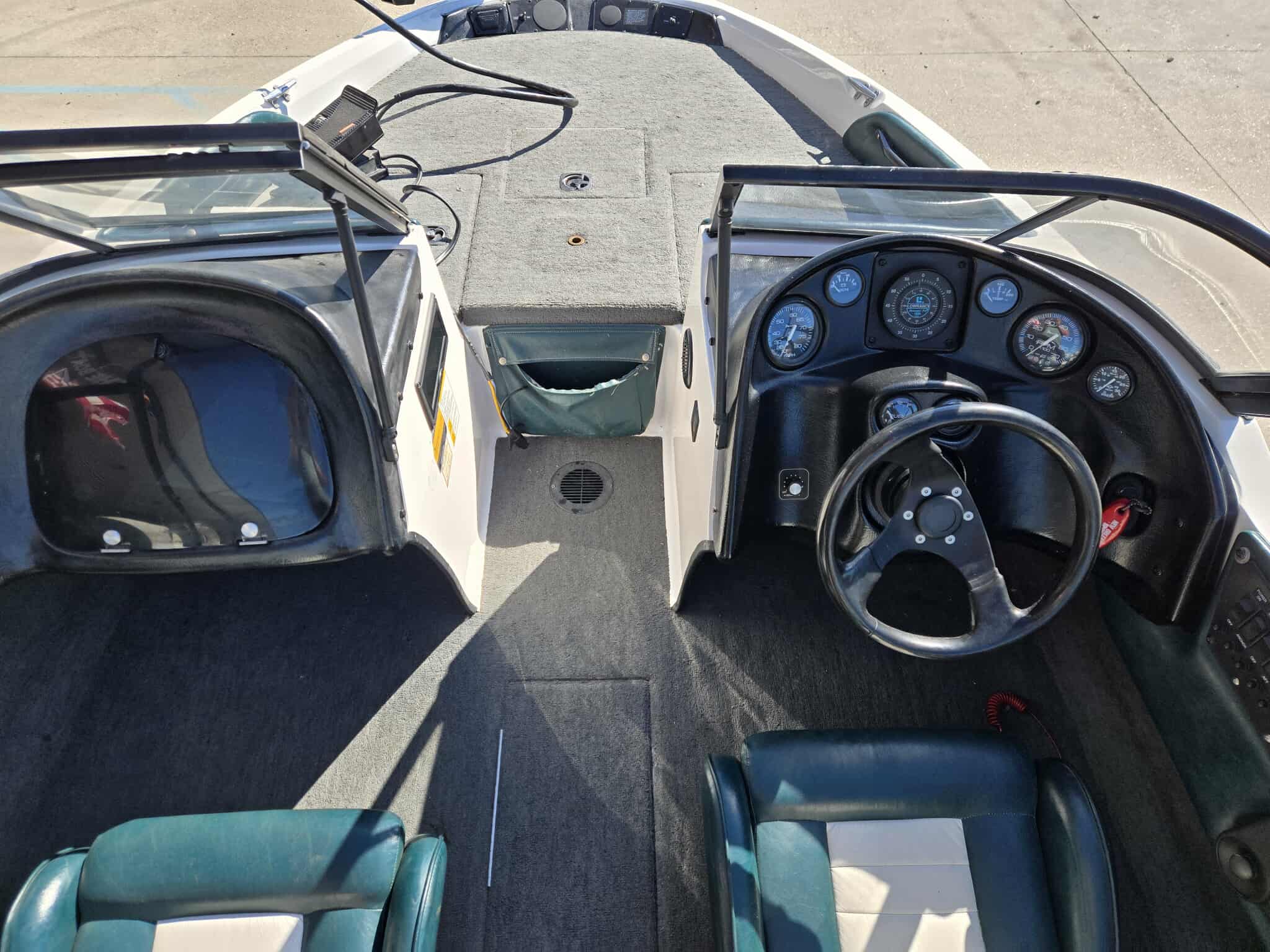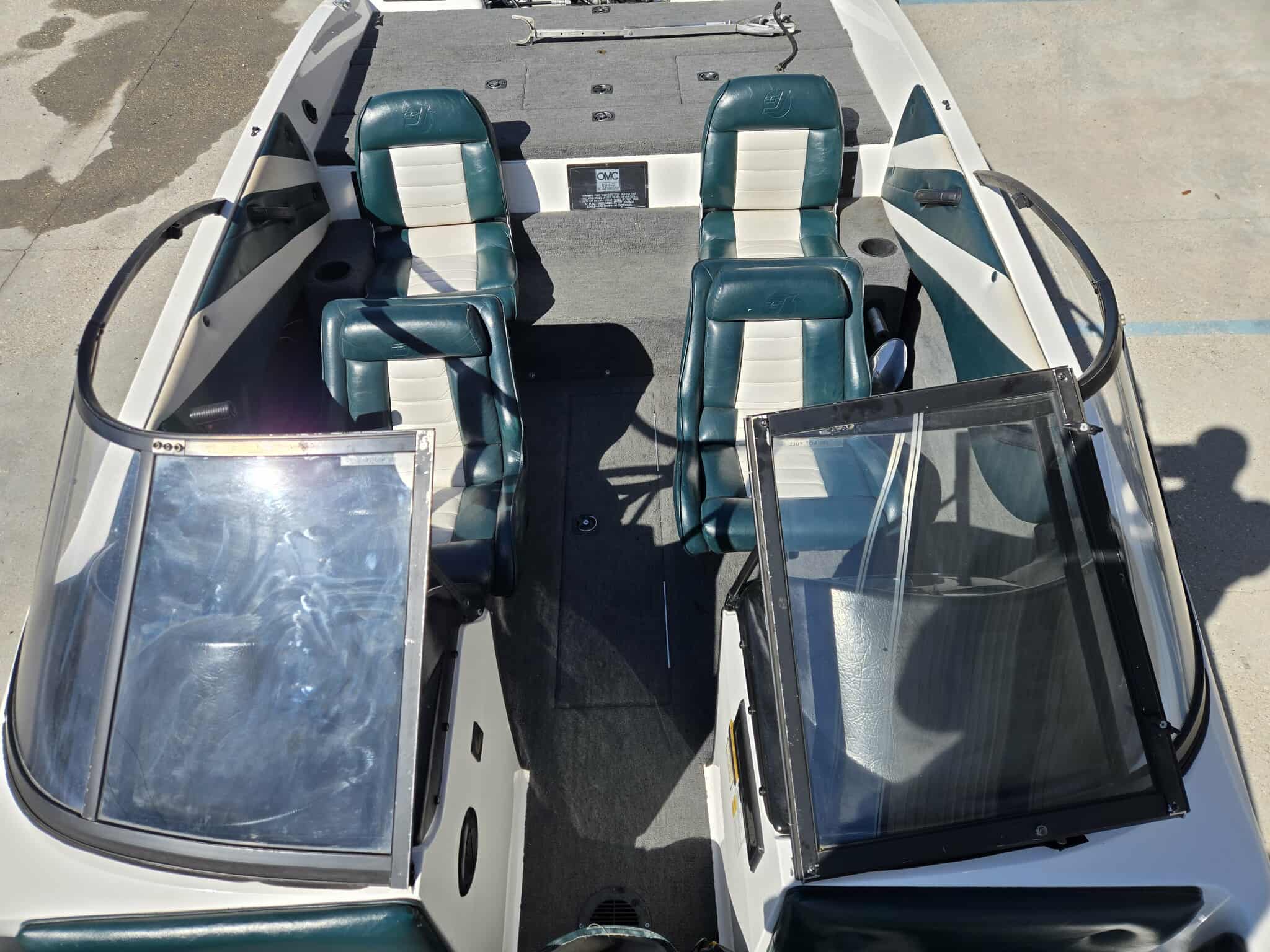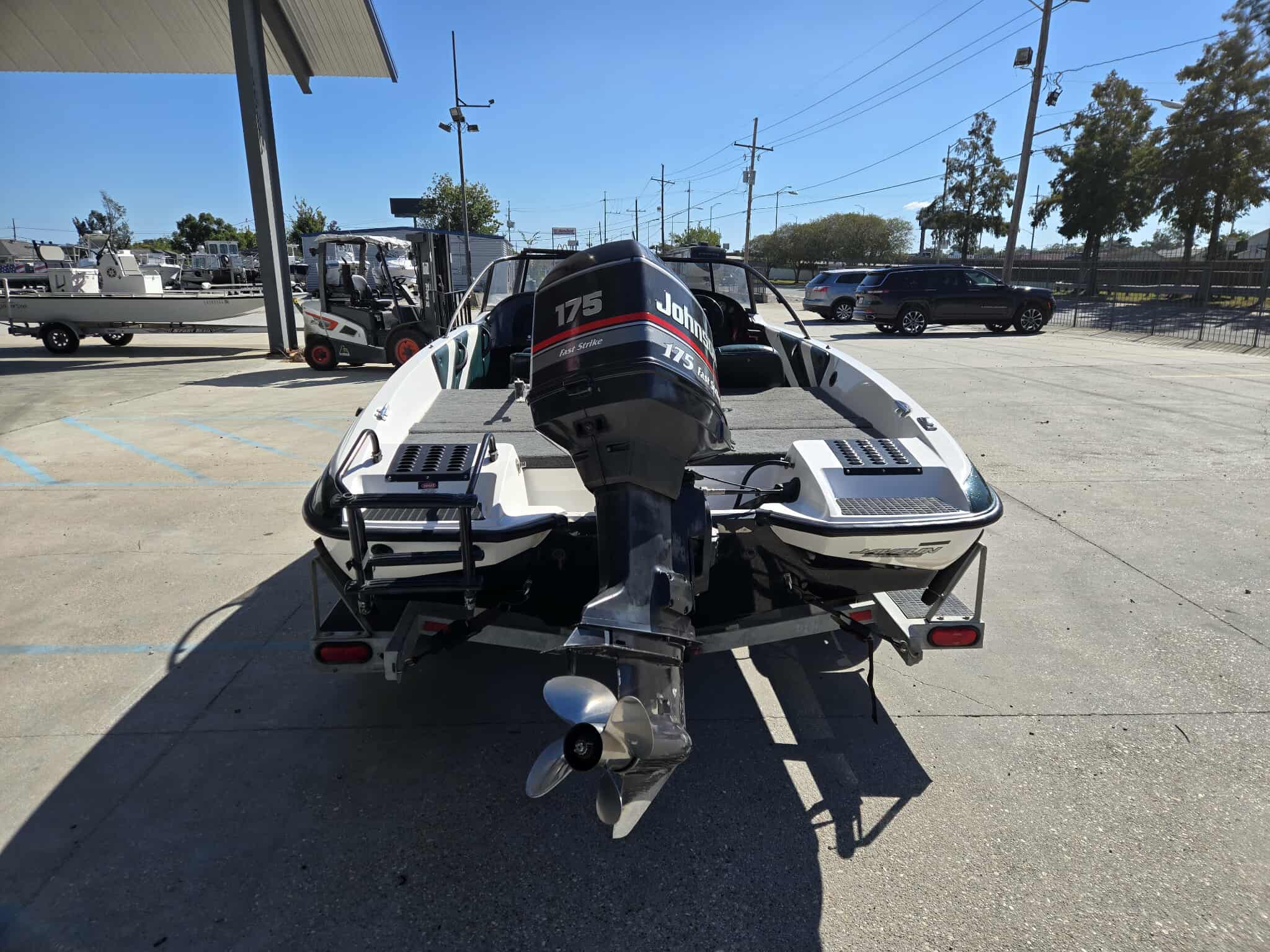 The Javelin 389 FS is a 19-foot fiberglass, outboard fishing boat with a beam of 7'5" and a net weight of about 1,590 pounds. It was a model from the mid-to-late 1990s and is part of the Javelin bass boat line, known for its racing-style appearance. This specific model was designed to be powered by a 175 horsepower outboard engine.