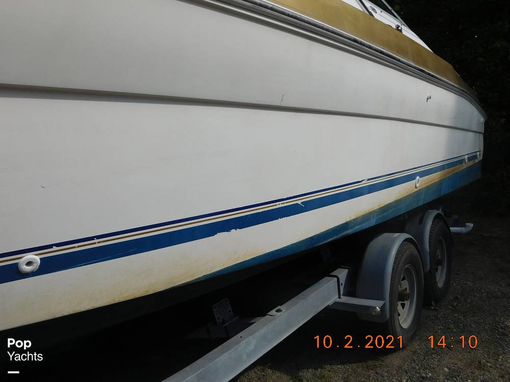 Powered by twin 250hp Mercruiser 5.7L LX engines, Alpha One Gen II outdrives. Her Deep-Vee hull will allow you to cut through the chop!