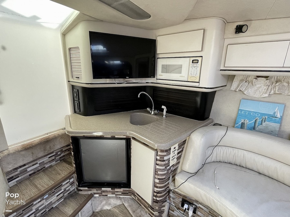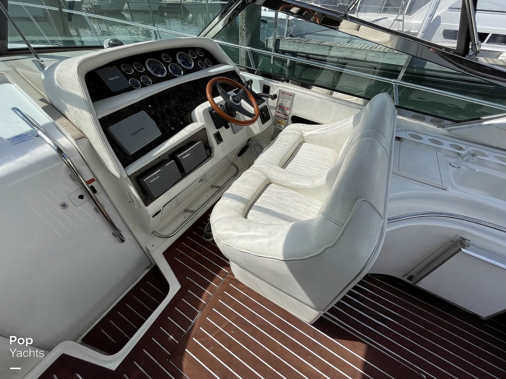 A very unique design the 1997 Sea Ray 380 Sun Sport can accommodate a large crew for day cruising or a long weekend away from the dock overnight. The cockpit is designed with lots of cockpit seating to enjoy the day. Below decks, you'll find a galley, enclosed head, dinette seating and a forward stateroom.