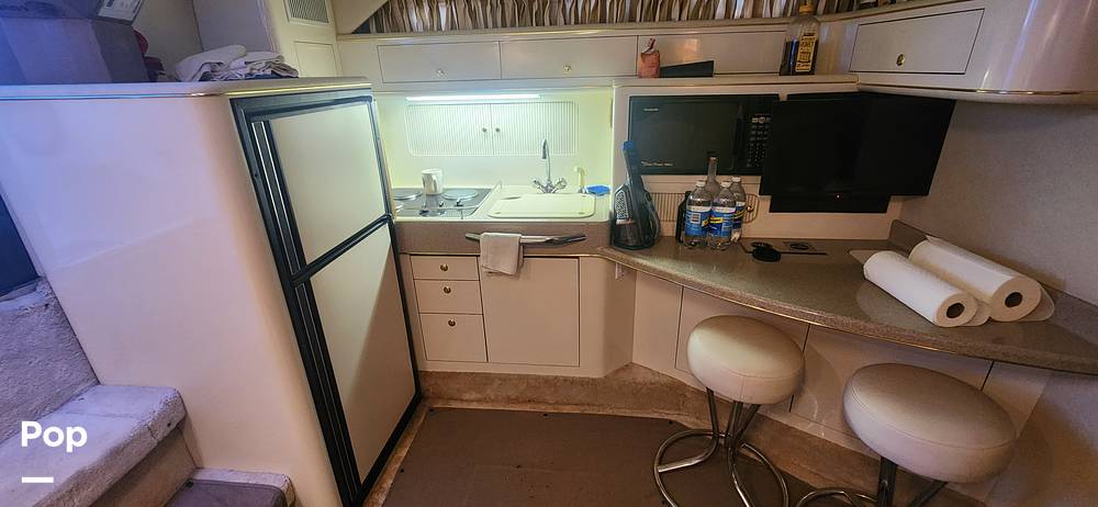 The 1997 Sea Ray 400 Express Cruiser is a fiberglass-hulled express cruiser designed for overnight cruising and family use, featuring a spacious cockpit, open helm area, and comfortable interior accommodations for up to 6 people.