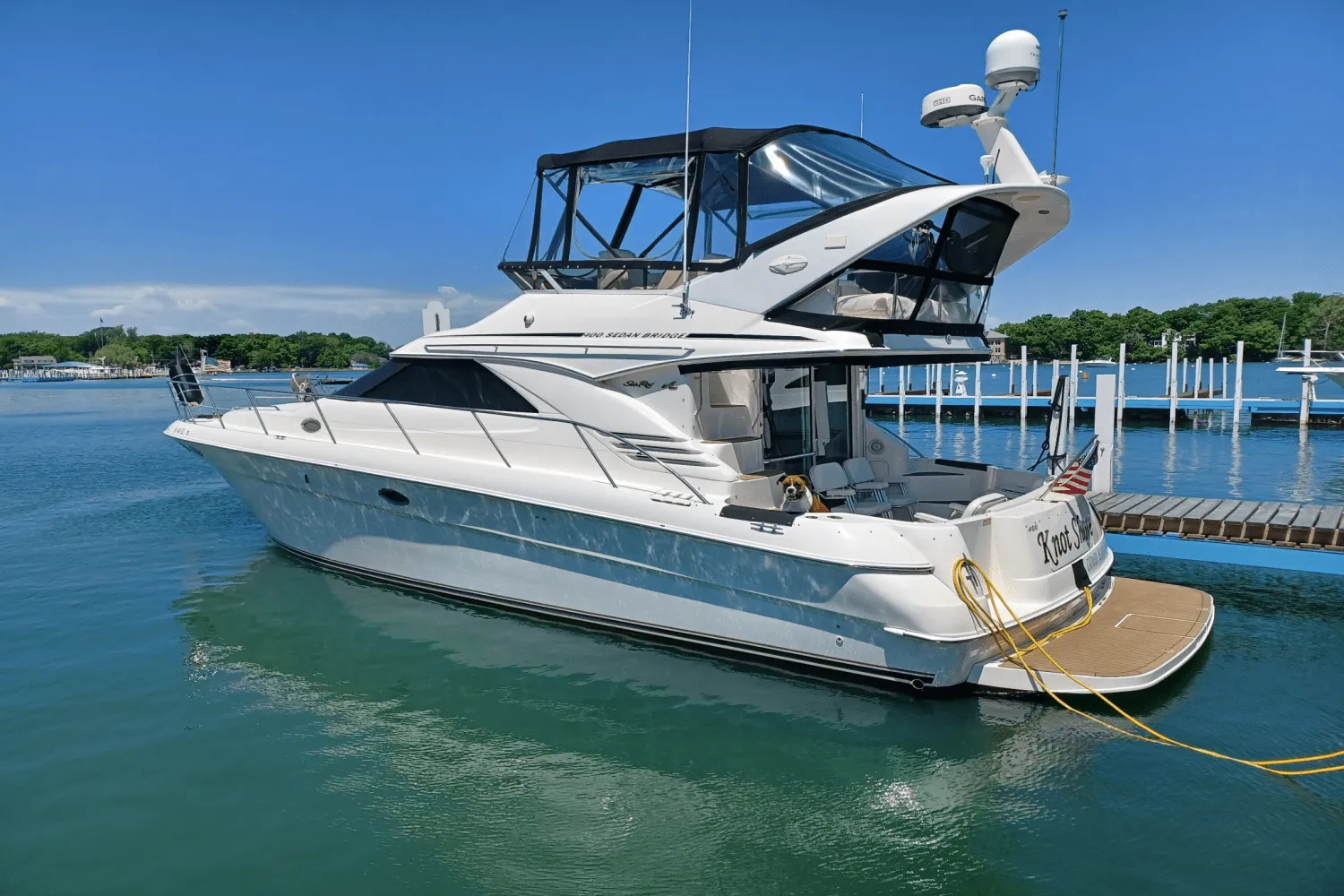 Diesel Power! This 400 Sedan Bridge is equipped with twin CAT 3116s with 900 hours on each. The boat has been freshwater kept since new and has always been heat stored by her current owner. Very well maintained! The two stateroom, two head layout has made the 400 Sedan Bridge one of Sea Ray's most popular yachts. The large galley, separate dinette, and spacious salon make the 400 a great boat for extended overnight trips. The vessel is currently located in Marblehead, OH and can be shown by appointment. Trades considered.