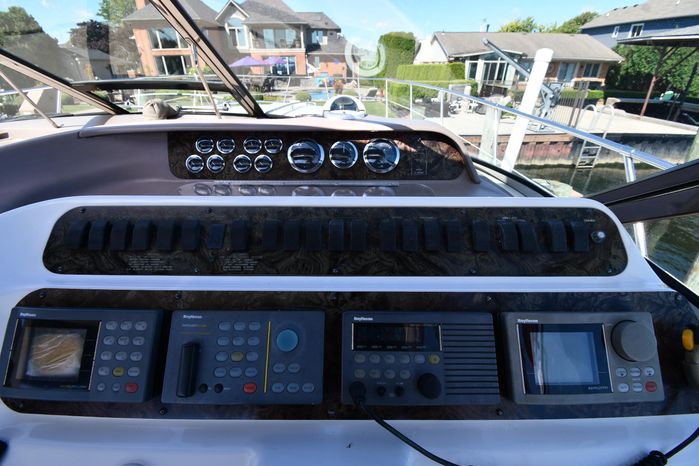 Freshwater / Great Lakes boat since new this vessel features Twin MerCruiser 496-MAG H.O. 425-hp Gas Engine's (Note 1047 total boat hours & 450-hours on re-power.) Notable features include but are not limited to the following: Air-Conditioning & Heat (2-Zones), (2) Heads (Vacuflush) w/Vanity/Sink/Shower (Stall-Shower in Forward Head), Central Vacuum, Westerbeke Generator (419-hrs), Windlass Anchor w/Forward Pedal Controls, Raytheon Electronics Package (VHF Marine Radio, Radar, GPS/Chartplotter, Autopilot, etc.), NEWER Canvas Package (Cockpit Mooring Cover, Forward & Aft Bimini's w/Full Isin-Glass Surround & Slant-Back Rear), Cockpit Wet Bar w/Sink/Ice-Maker, Snap-in Snap-out Cockpit Carpeting, Upgraded Bluetooth Sound System w/iPod/MP3-Connection (Note Upgraded Speakers), and MUCH more!
