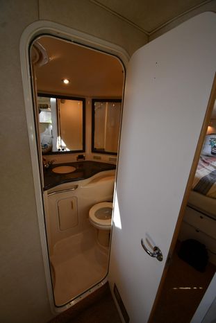 Freshwater / Great Lakes boat since new this vessel features Twin MerCruiser 496-MAG H.O. 425-hp Gas Engine's (Note 1047 total boat hours & 450-hours on re-power.) Notable features include but are not limited to the following: Air-Conditioning & Heat (2-Zones), (2) Heads (Vacuflush) w/Vanity/Sink/Shower (Stall-Shower in Forward Head), Central Vacuum, Westerbeke Generator (419-hrs), Windlass Anchor w/Forward Pedal Controls, Raytheon Electronics Package (VHF Marine Radio, Radar, GPS/Chartplotter, Autopilot, etc.), NEWER Canvas Package (Cockpit Mooring Cover, Forward & Aft Bimini's w/Full Isin-Glass Surround & Slant-Back Rear), Cockpit Wet Bar w/Sink/Ice-Maker, Snap-in Snap-out Cockpit Carpeting, Upgraded Bluetooth Sound System w/iPod/MP3-Connection (Note Upgraded Speakers), and MUCH more!
