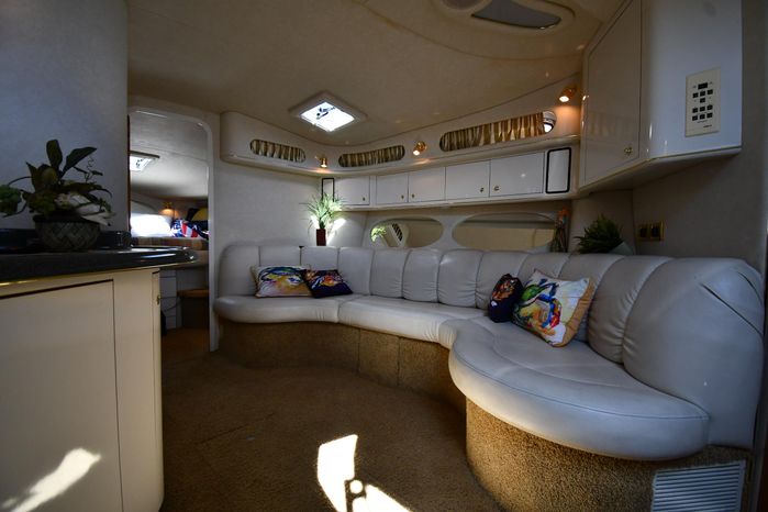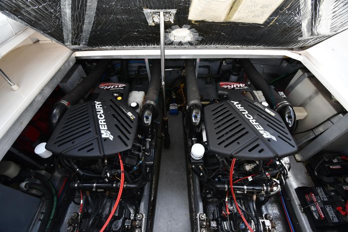 Broker Notes: Note newer refrigerator, newer heads, newer cabin carpeting, upgraded sound system, newer full canvas package, custom aft deck table...Seller invested in re-power w/MerCruiser 496-MAG (High-Output) 425-hp Gas Engine's (this one moves!) CLEAN boat & highly recommended by listing agent!