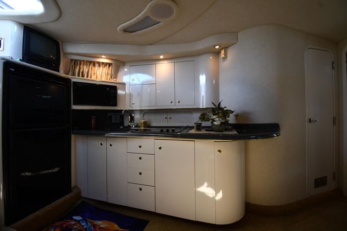 Freshwater / Great Lakes boat since new this vessel features Twin MerCruiser 496-MAG H.O. 425-hp Gas Engine's (Note 1047 total boat hours & 450-hours on re-power.) Notable features include but are not limited to the following: Air-Conditioning & Heat (2-Zones), (2) Heads (Vacuflush) w/Vanity/Sink/Shower (Stall-Shower in Forward Head), Central Vacuum, Westerbeke Generator (419-hrs), Windlass Anchor w/Forward Pedal Controls, Raytheon Electronics Package (VHF Marine Radio, Radar, GPS/Chartplotter, Autopilot, etc.), NEWER Canvas Package (Cockpit Mooring Cover, Forward & Aft Bimini's w/Full Isin-Glass Surround & Slant-Back Rear), Cockpit Wet Bar w/Sink/Ice-Maker, Snap-in Snap-out Cockpit Carpeting, Upgraded Bluetooth Sound System w/iPod/MP3-Connection (Note Upgraded Speakers), and MUCH more!