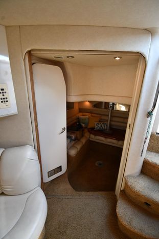 Freshwater / Great Lakes boat since new this vessel features Twin MerCruiser 496-MAG H.O. 425-hp Gas Engine's (Note 1047 total boat hours & 450-hours on re-power.) Notable features include but are not limited to the following: Air-Conditioning & Heat (2-Zones), (2) Heads (Vacuflush) w/Vanity/Sink/Shower (Stall-Shower in Forward Head), Central Vacuum, Westerbeke Generator (419-hrs), Windlass Anchor w/Forward Pedal Controls, Raytheon Electronics Package (VHF Marine Radio, Radar, GPS/Chartplotter, Autopilot, etc.), NEWER Canvas Package (Cockpit Mooring Cover, Forward & Aft Bimini's w/Full Isin-Glass Surround & Slant-Back Rear), Cockpit Wet Bar w/Sink/Ice-Maker, Snap-in Snap-out Cockpit Carpeting, Upgraded Bluetooth Sound System w/iPod/MP3-Connection (Note Upgraded Speakers), and MUCH more!