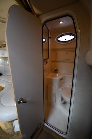 Freshwater / Great Lakes boat since new this vessel features Twin MerCruiser 496-MAG H.O. 425-hp Gas Engine's (Note 1047 total boat hours & 450-hours on re-power.) Notable features include but are not limited to the following: Air-Conditioning & Heat (2-Zones), (2) Heads (Vacuflush) w/Vanity/Sink/Shower (Stall-Shower in Forward Head), Central Vacuum, Westerbeke Generator (419-hrs), Windlass Anchor w/Forward Pedal Controls, Raytheon Electronics Package (VHF Marine Radio, Radar, GPS/Chartplotter, Autopilot, etc.), NEWER Canvas Package (Cockpit Mooring Cover, Forward & Aft Bimini's w/Full Isin-Glass Surround & Slant-Back Rear), Cockpit Wet Bar w/Sink/Ice-Maker, Snap-in Snap-out Cockpit Carpeting, Upgraded Bluetooth Sound System w/iPod/MP3-Connection (Note Upgraded Speakers), and MUCH more!