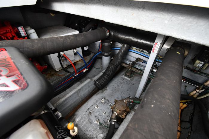 Freshwater / Great Lakes boat since new this vessel features Twin MerCruiser 496-MAG H.O. 425-hp Gas Engine's (Note 1047 total boat hours & 450-hours on re-power.) Notable features include but are not limited to the following: Air-Conditioning & Heat (2-Zones), (2) Heads (Vacuflush) w/Vanity/Sink/Shower (Stall-Shower in Forward Head), Central Vacuum, Westerbeke Generator (419-hrs), Windlass Anchor w/Forward Pedal Controls, Raytheon Electronics Package (VHF Marine Radio, Radar, GPS/Chartplotter, Autopilot, etc.), NEWER Canvas Package (Cockpit Mooring Cover, Forward & Aft Bimini's w/Full Isin-Glass Surround & Slant-Back Rear), Cockpit Wet Bar w/Sink/Ice-Maker, Snap-in Snap-out Cockpit Carpeting, Upgraded Bluetooth Sound System w/iPod/MP3-Connection (Note Upgraded Speakers), and MUCH more!