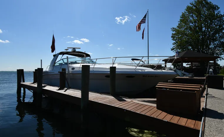 Freshwater / Great Lakes boat since new this vessel features Twin MerCruiser 496-MAG H.O. 425-hp Gas Engine's (Note 1047 total boat hours & 450-hours on re-power.) Notable features include but are not limited to the following: Air-Conditioning & Heat (2-Zones), (2) Heads (Vacuflush) w/Vanity/Sink/Shower (Stall-Shower in Forward Head), Central Vacuum, Westerbeke Generator (419-hrs), Windlass Anchor w/Forward Pedal Controls, Raytheon Electronics Package (VHF Marine Radio, Radar, GPS/Chartplotter, Autopilot, etc.), NEWER Canvas Package (Cockpit Mooring Cover, Forward & Aft Bimini's w/Full Isin-Glass Surround & Slant-Back Rear), Cockpit Wet Bar w/Sink/Ice-Maker, Snap-in Snap-out Cockpit Carpeting, Upgraded Bluetooth Sound System w/iPod/MP3-Connection (Note Upgraded Speakers), and MUCH more!