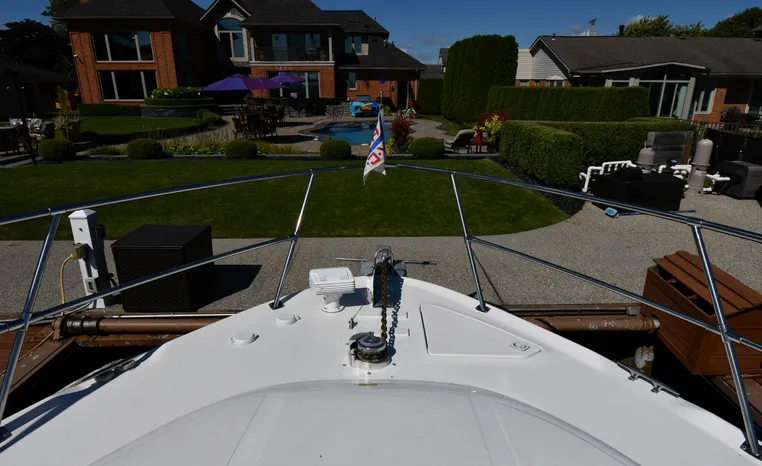 Freshwater / Great Lakes boat since new this vessel features Twin MerCruiser 496-MAG H.O. 425-hp Gas Engine's (Note 1047 total boat hours & 450-hours on re-power.) Notable features include but are not limited to the following: Air-Conditioning & Heat (2-Zones), (2) Heads (Vacuflush) w/Vanity/Sink/Shower (Stall-Shower in Forward Head), Central Vacuum, Westerbeke Generator (419-hrs), Windlass Anchor w/Forward Pedal Controls, Raytheon Electronics Package (VHF Marine Radio, Radar, GPS/Chartplotter, Autopilot, etc.), NEWER Canvas Package (Cockpit Mooring Cover, Forward & Aft Bimini's w/Full Isin-Glass Surround & Slant-Back Rear), Cockpit Wet Bar w/Sink/Ice-Maker, Snap-in Snap-out Cockpit Carpeting, Upgraded Bluetooth Sound System w/iPod/MP3-Connection (Note Upgraded Speakers), and MUCH more!
