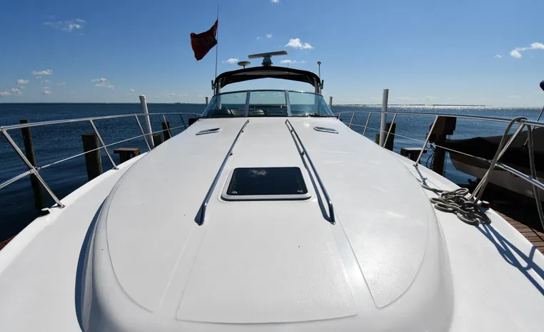 Freshwater / Great Lakes boat since new this vessel features Twin MerCruiser 496-MAG H.O. 425-hp Gas Engine's (Note 1047 total boat hours & 450-hours on re-power.) Notable features include but are not limited to the following: Air-Conditioning & Heat (2-Zones), (2) Heads (Vacuflush) w/Vanity/Sink/Shower (Stall-Shower in Forward Head), Central Vacuum, Westerbeke Generator (419-hrs), Windlass Anchor w/Forward Pedal Controls, Raytheon Electronics Package (VHF Marine Radio, Radar, GPS/Chartplotter, Autopilot, etc.), NEWER Canvas Package (Cockpit Mooring Cover, Forward & Aft Bimini's w/Full Isin-Glass Surround & Slant-Back Rear), Cockpit Wet Bar w/Sink/Ice-Maker, Snap-in Snap-out Cockpit Carpeting, Upgraded Bluetooth Sound System w/iPod/MP3-Connection (Note Upgraded Speakers), and MUCH more!