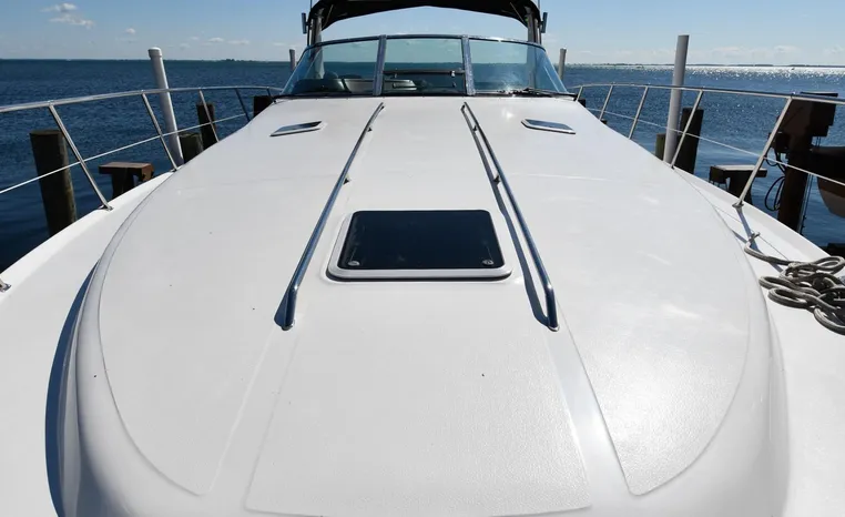Freshwater / Great Lakes boat since new this vessel features Twin MerCruiser 496-MAG H.O. 425-hp Gas Engine's (Note 1047 total boat hours & 450-hours on re-power.) Notable features include but are not limited to the following: Air-Conditioning & Heat (2-Zones), (2) Heads (Vacuflush) w/Vanity/Sink/Shower (Stall-Shower in Forward Head), Central Vacuum, Westerbeke Generator (419-hrs), Windlass Anchor w/Forward Pedal Controls, Raytheon Electronics Package (VHF Marine Radio, Radar, GPS/Chartplotter, Autopilot, etc.), NEWER Canvas Package (Cockpit Mooring Cover, Forward & Aft Bimini's w/Full Isin-Glass Surround & Slant-Back Rear), Cockpit Wet Bar w/Sink/Ice-Maker, Snap-in Snap-out Cockpit Carpeting, Upgraded Bluetooth Sound System w/iPod/MP3-Connection (Note Upgraded Speakers), and MUCH more!